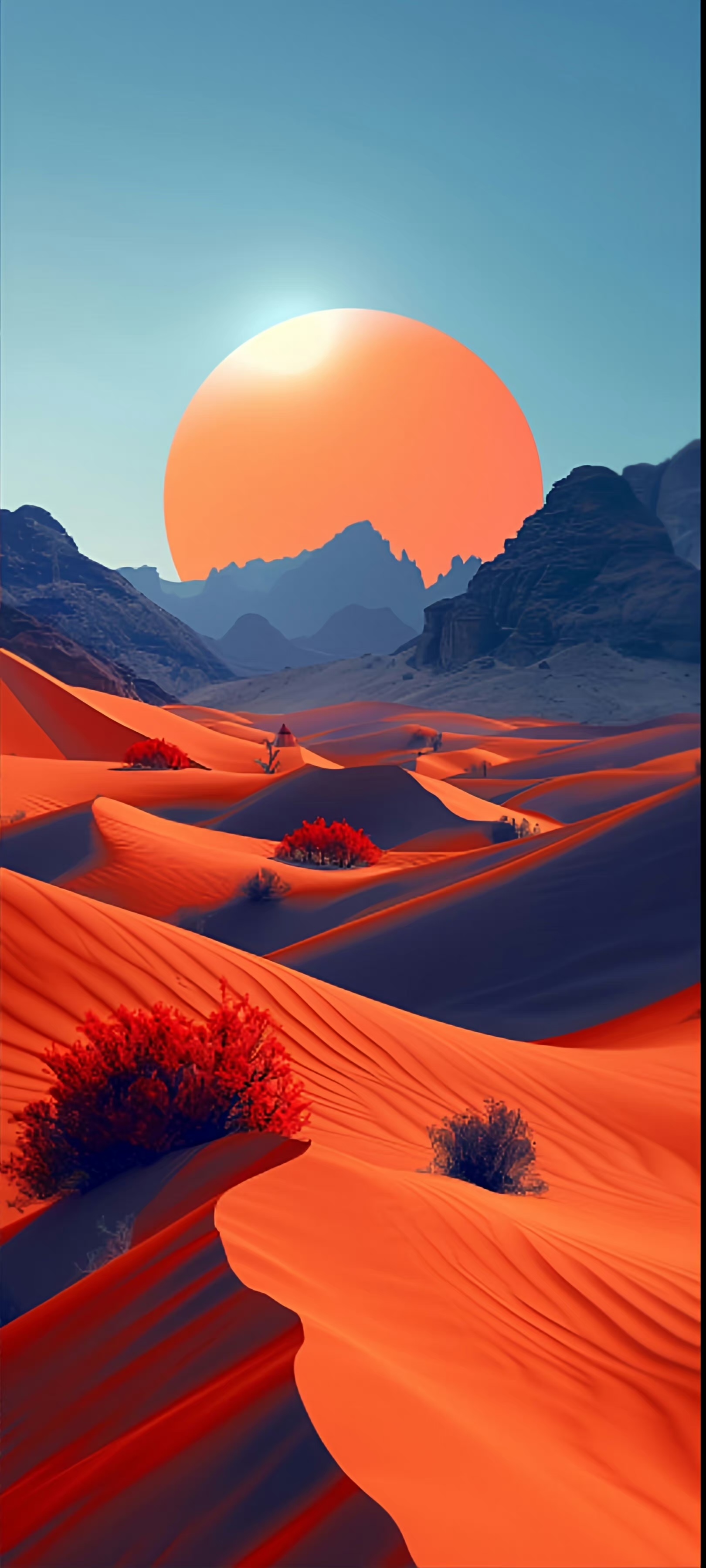 Desert Landscape, Sand Dunes, Sunrise, Mountain Range 2K iPhone Wallpaper Background (1620x3600)