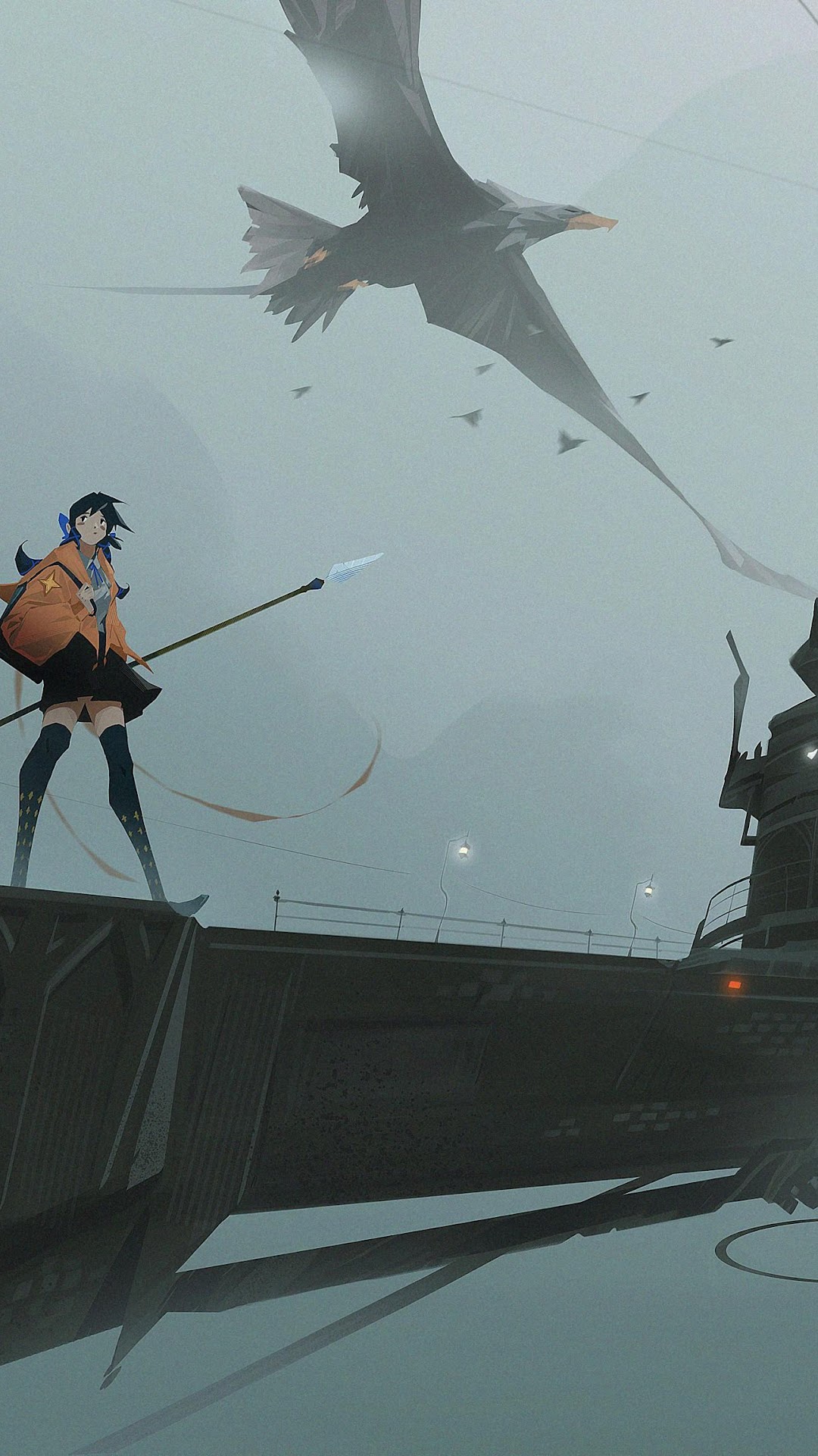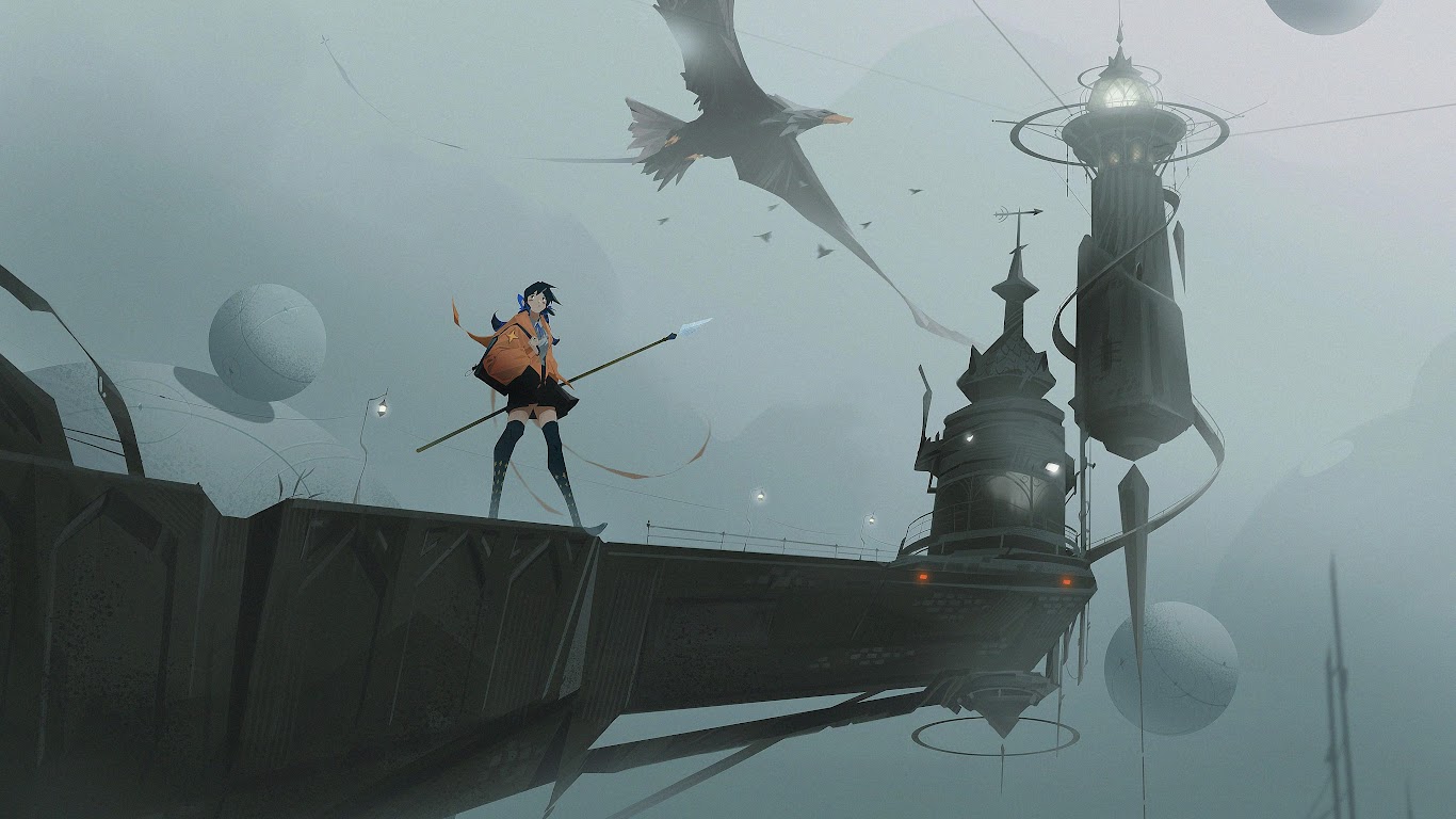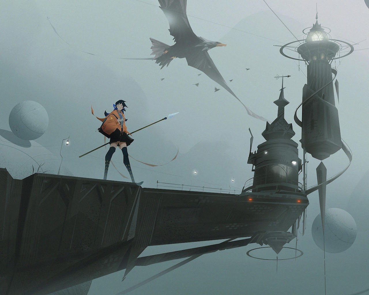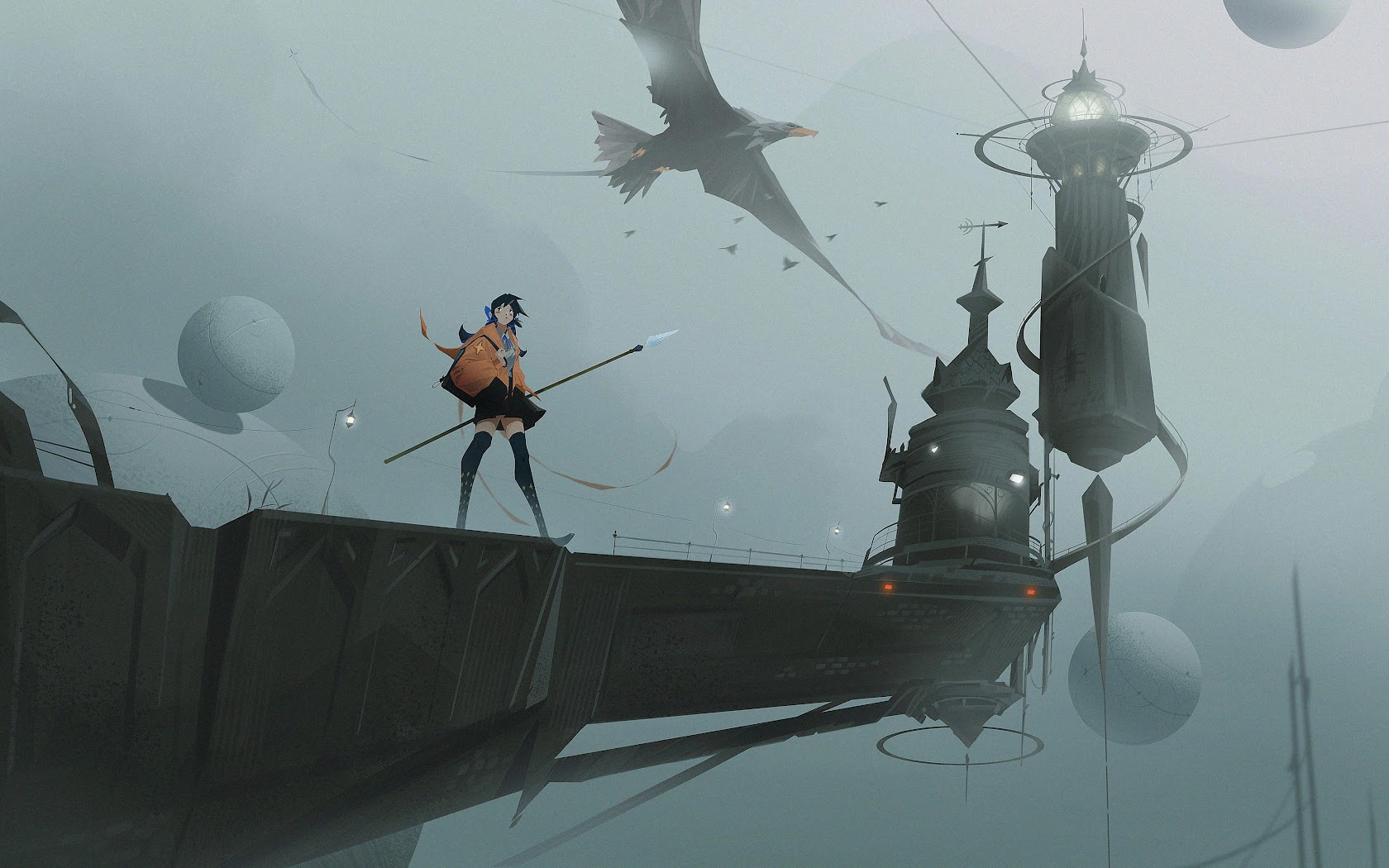 Fantasy Artwork, Anime Landscape, Bird Illustration, Floating Architecture 4K Desktop Wallpaper