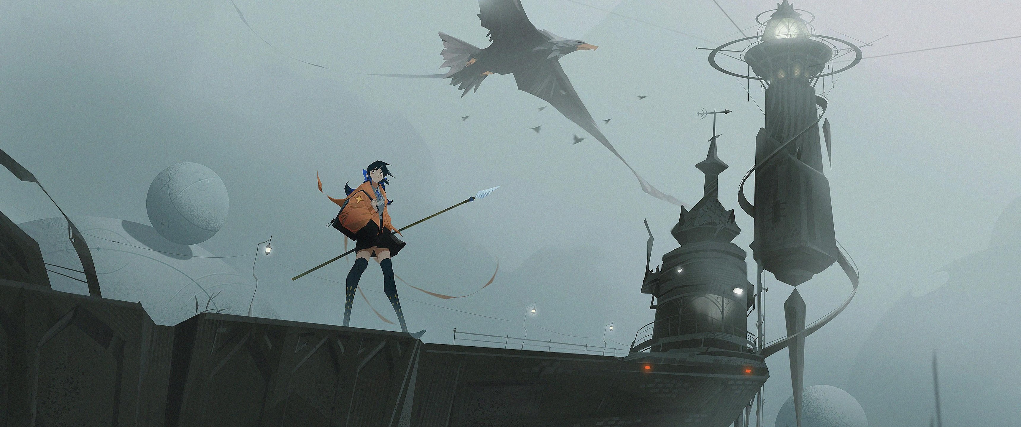 Fantasy Artwork, Anime Landscape, Bird Illustration, Floating Architecture 4K Wallpaper Background (3840x2303)