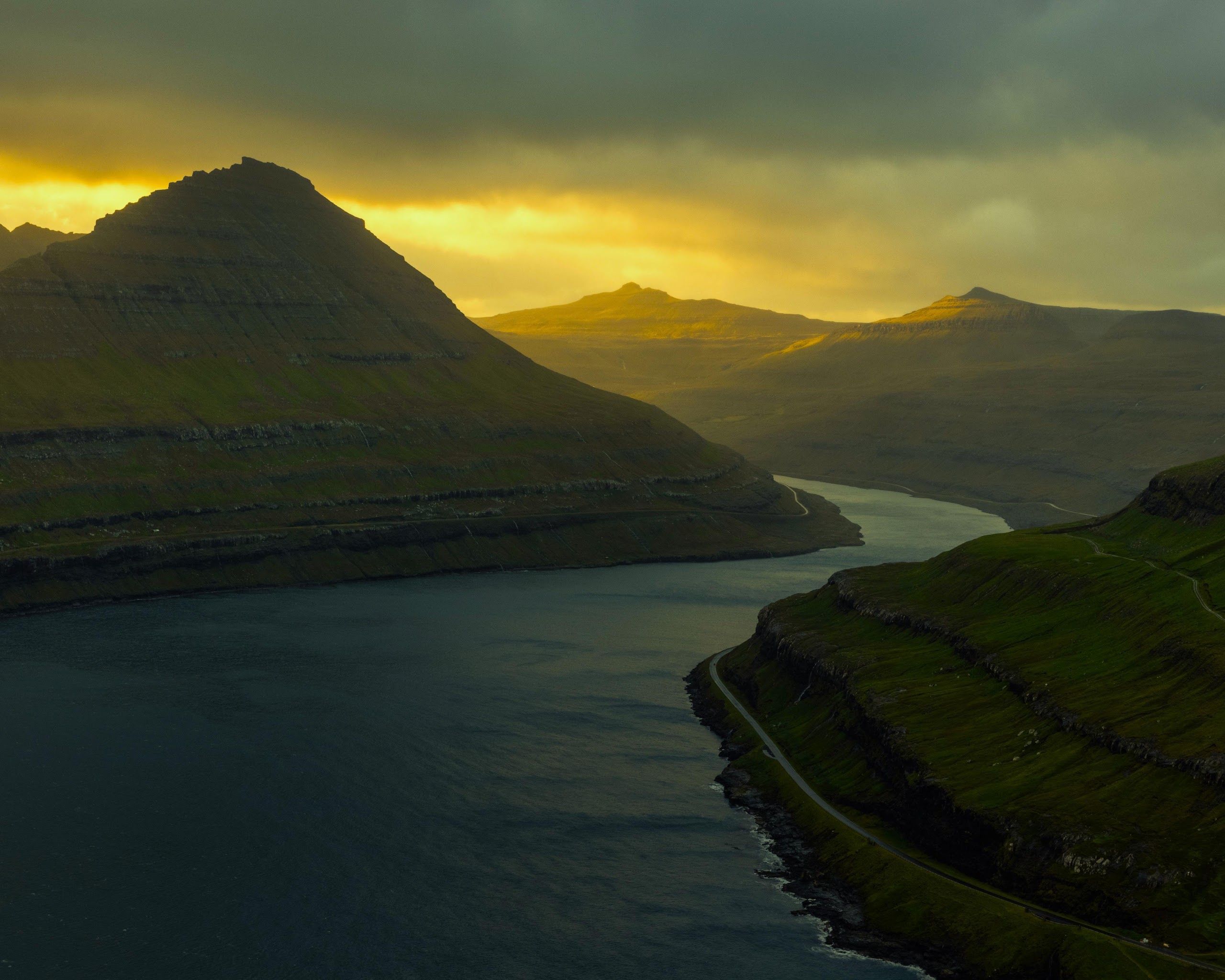 Faroe Islands, Mountain Landscape, Fjord, Scenic View 5K Desktop Wallpaper