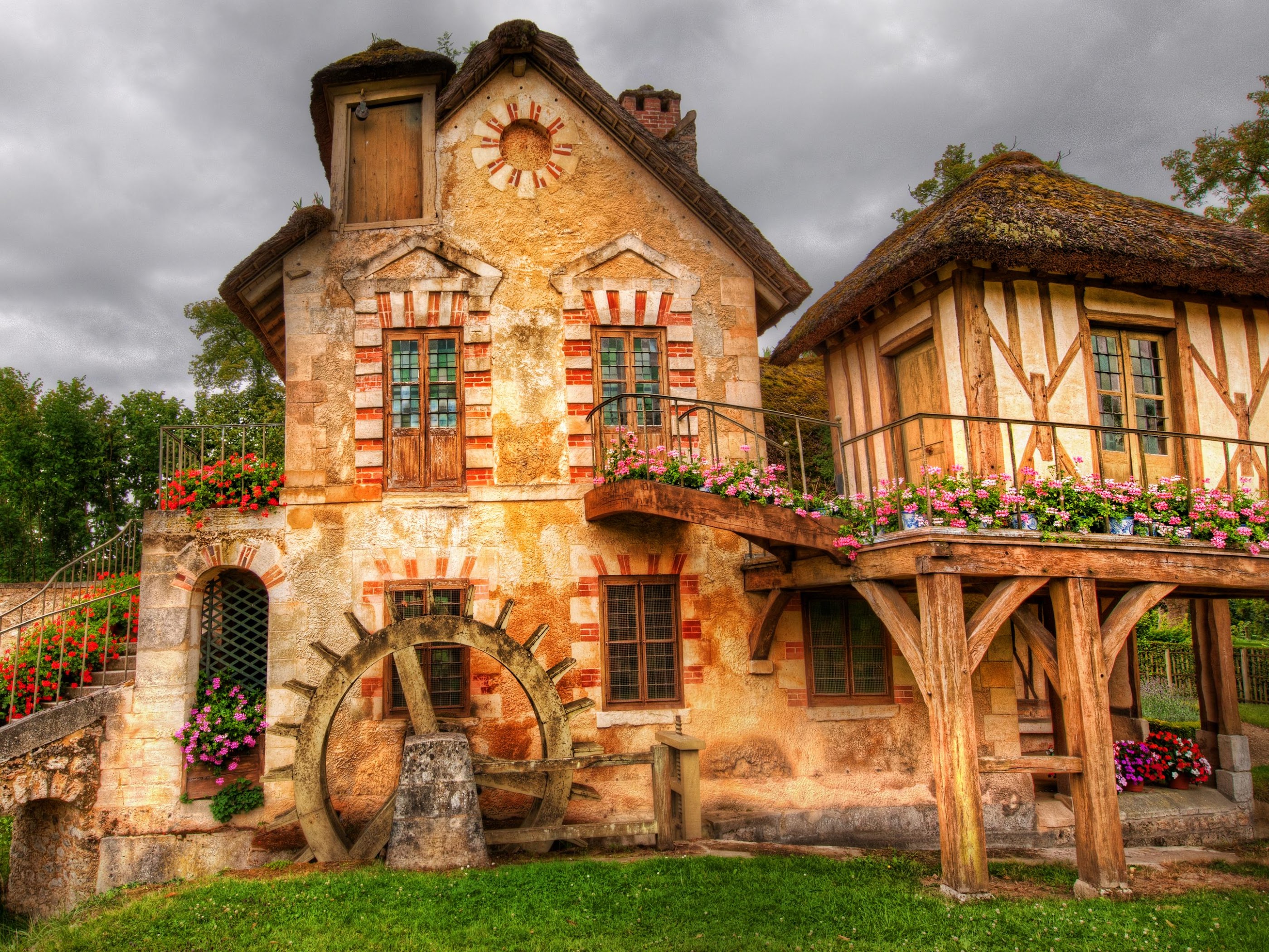 Hameau De La Reine, Thatched Cottage, French Architecture, Historic Building 4K Desktop and Mobile Wallpaper Background with a maximum resolution of 3840x2160 px.