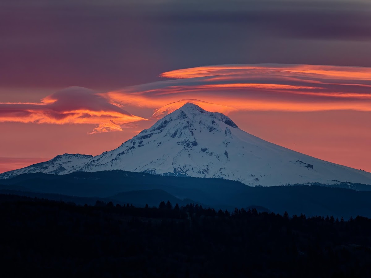 Mount Hood, Oregon, Sunrise, Lenticular Clouds 5K Desktop and Mobile Wallpaper Background with a maximum resolution of 5184x3888 px.