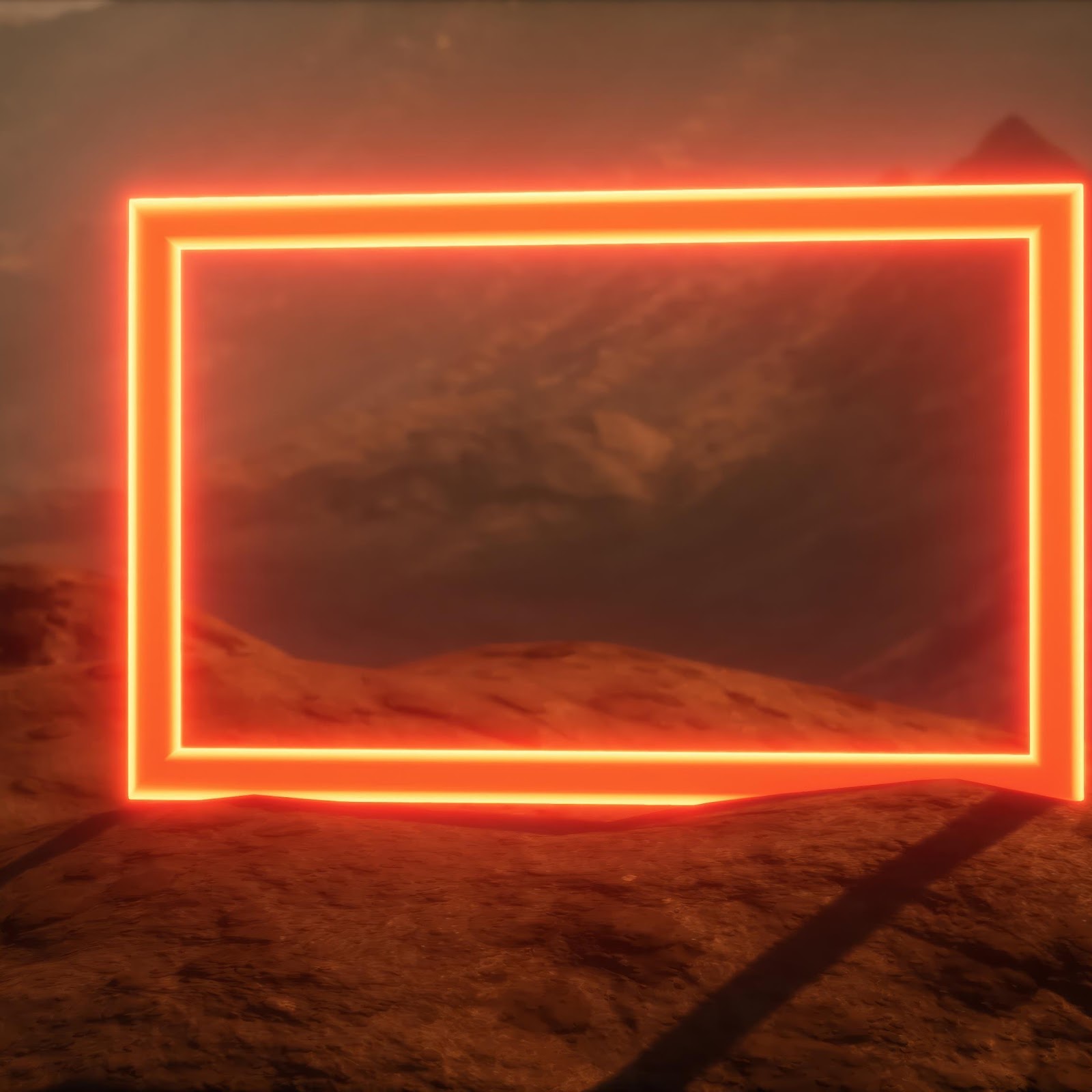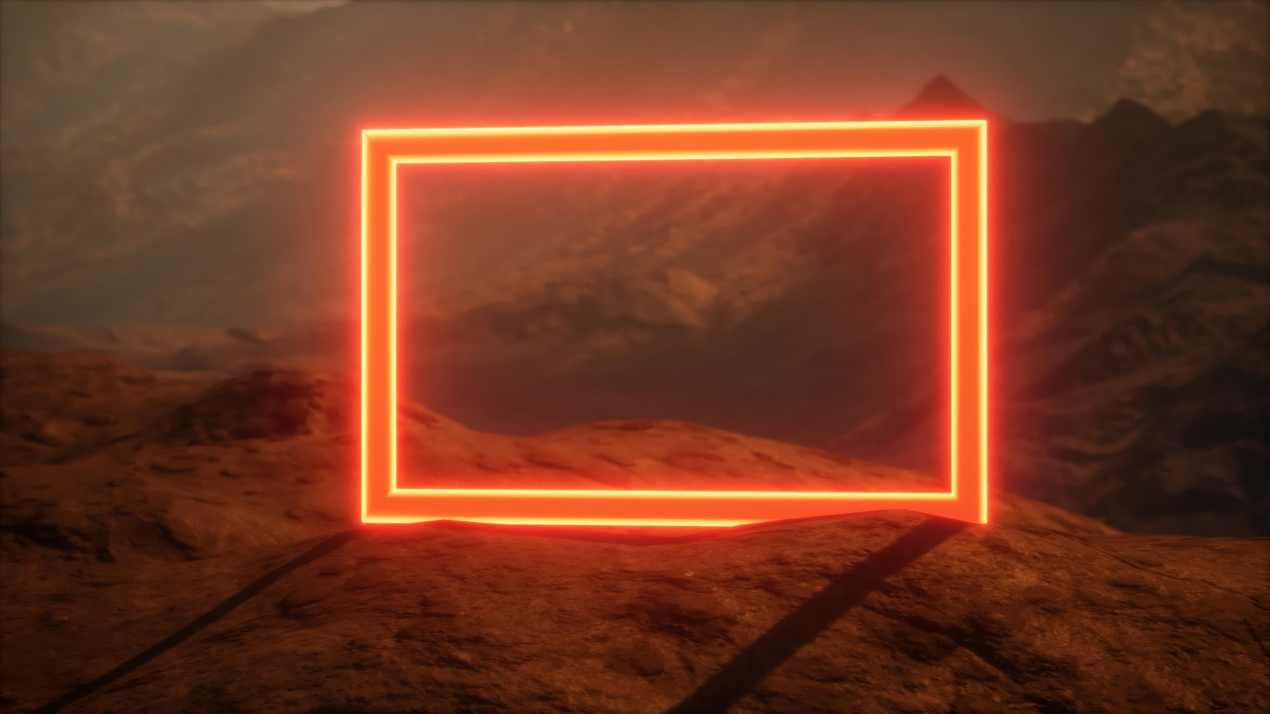 Neon Frame, Desert Landscape, Futuristic Art, Abstract Scene 4K Desktop and Mobile Wallpaper Background with a maximum resolution of 4096x2304 px.