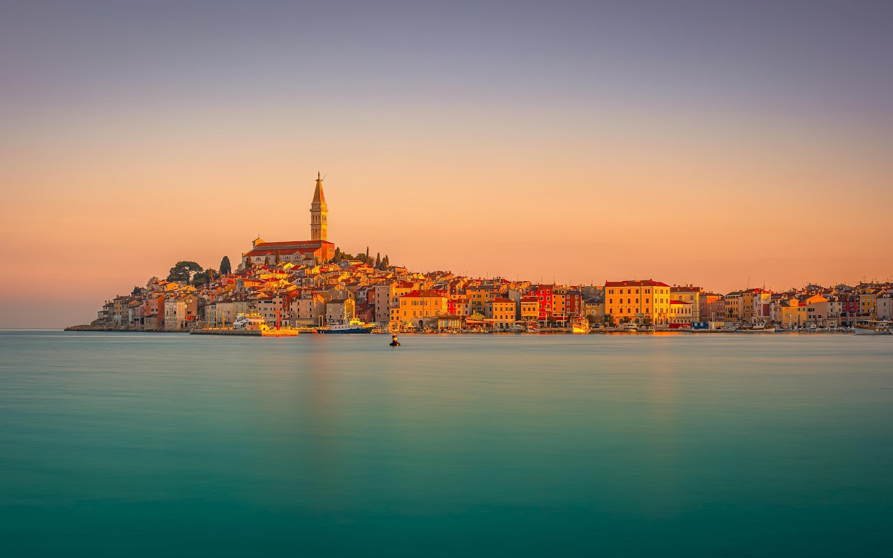 Rovinj, Croatia, Coastal, Sunset 4K Desktop and Mobile Wallpaper Background with a maximum resolution of 3840x2160 px.
