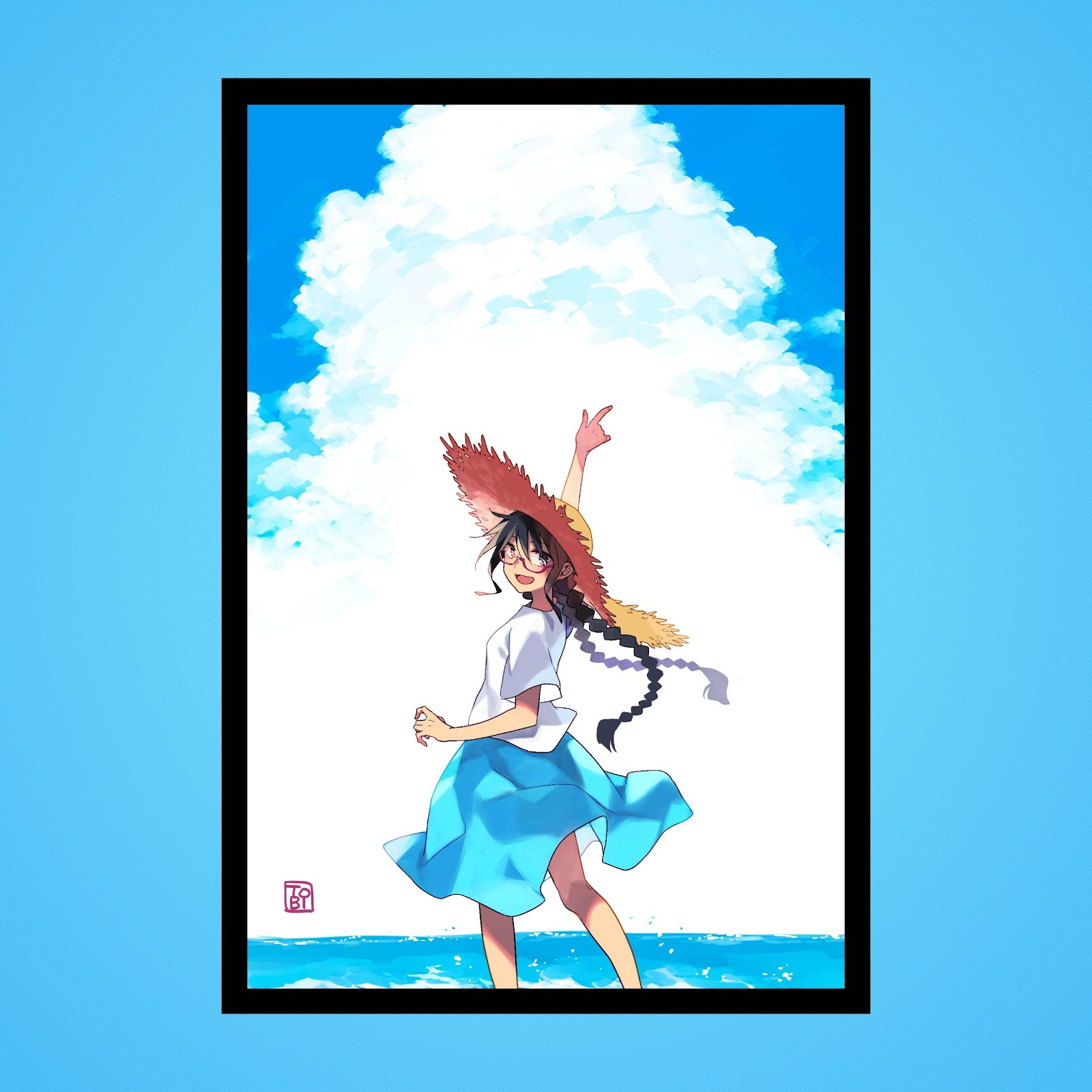 Anime Girl, Straw Hat, Summer, Seaside 4K Phone Wallpaper