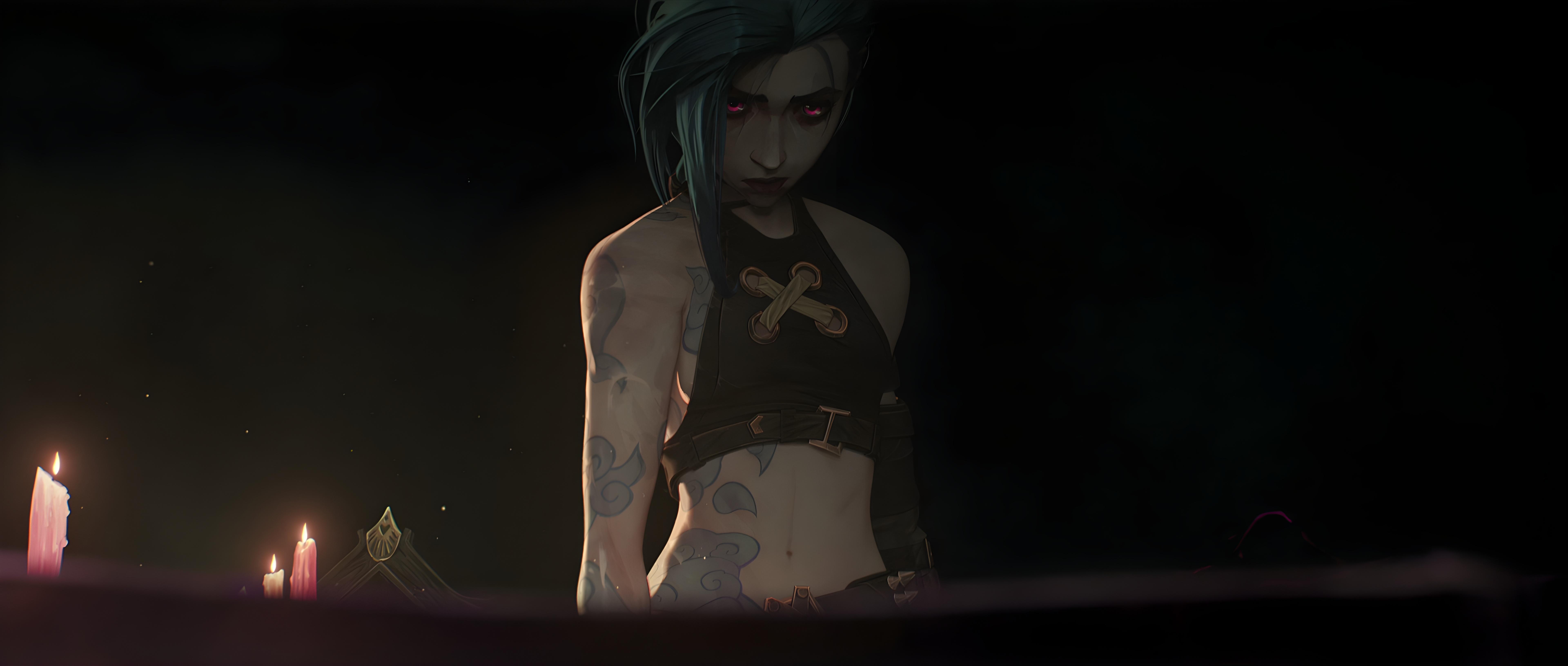 Arcane, Jinx, League Of Legends, Netflix 5K Ultrawide Desktop and Mobile Wallpaper Background with a maximum resolution of 7680x3264 px.