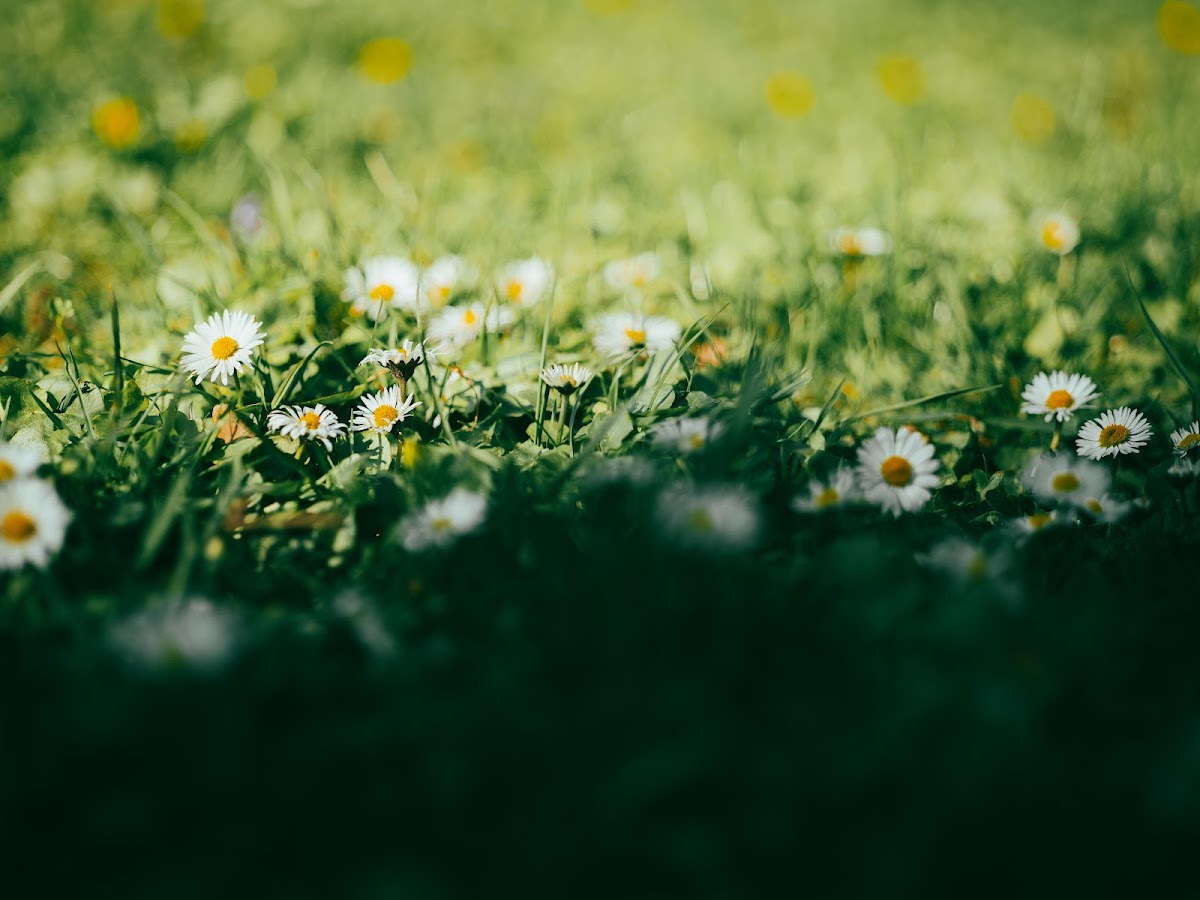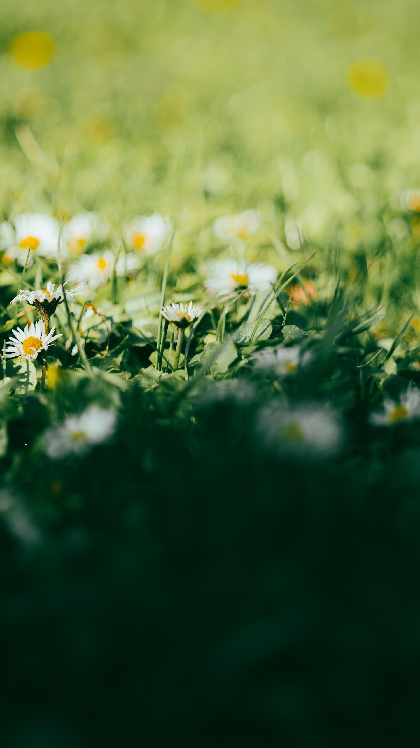 Daisy Flowers, Greenery, Meadow, Springtime 8K Desktop and Mobile Wallpaper Background with a maximum resolution of 8256x6192 px.