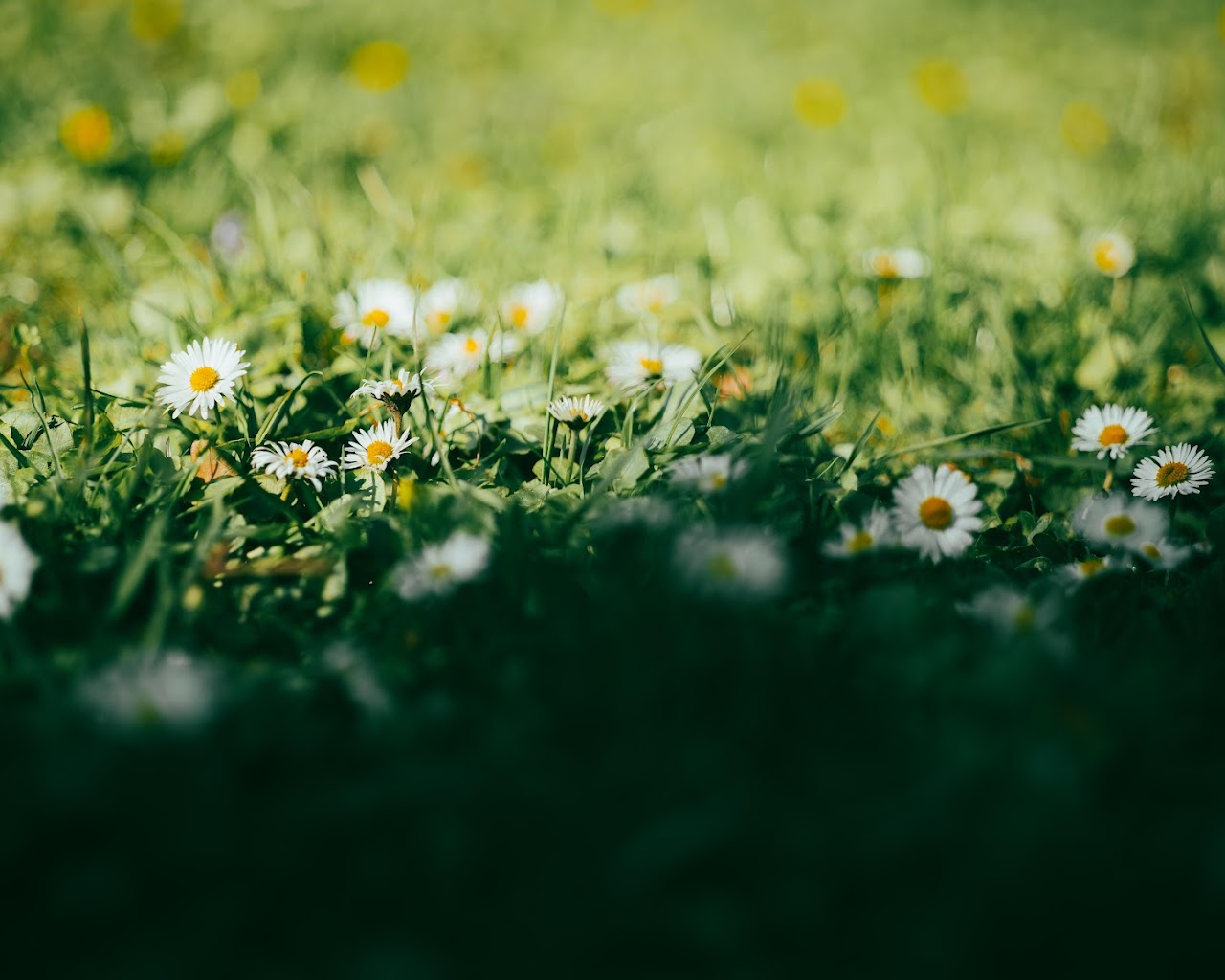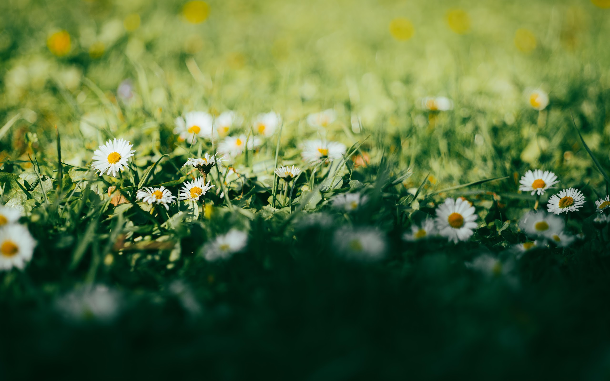 Daisy Flowers, Greenery, Meadow, Springtime 8K Desktop and Mobile Wallpaper Background with a maximum resolution of 8256x6192 px.