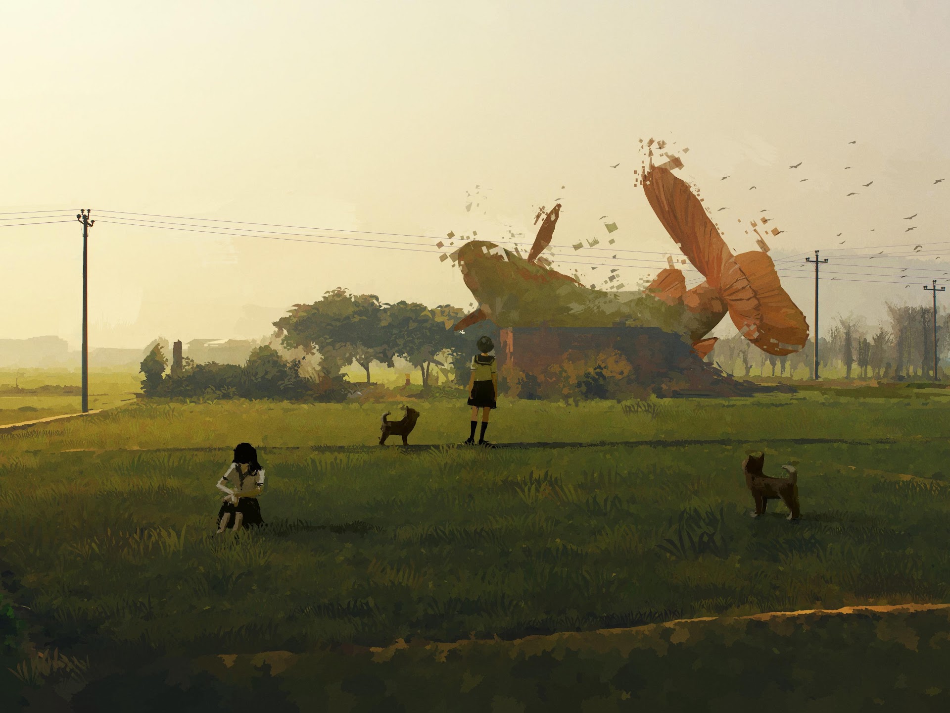 Digital Painting, Japanese Art, Countryside, Surrealism 4K Desktop Wallpaper
