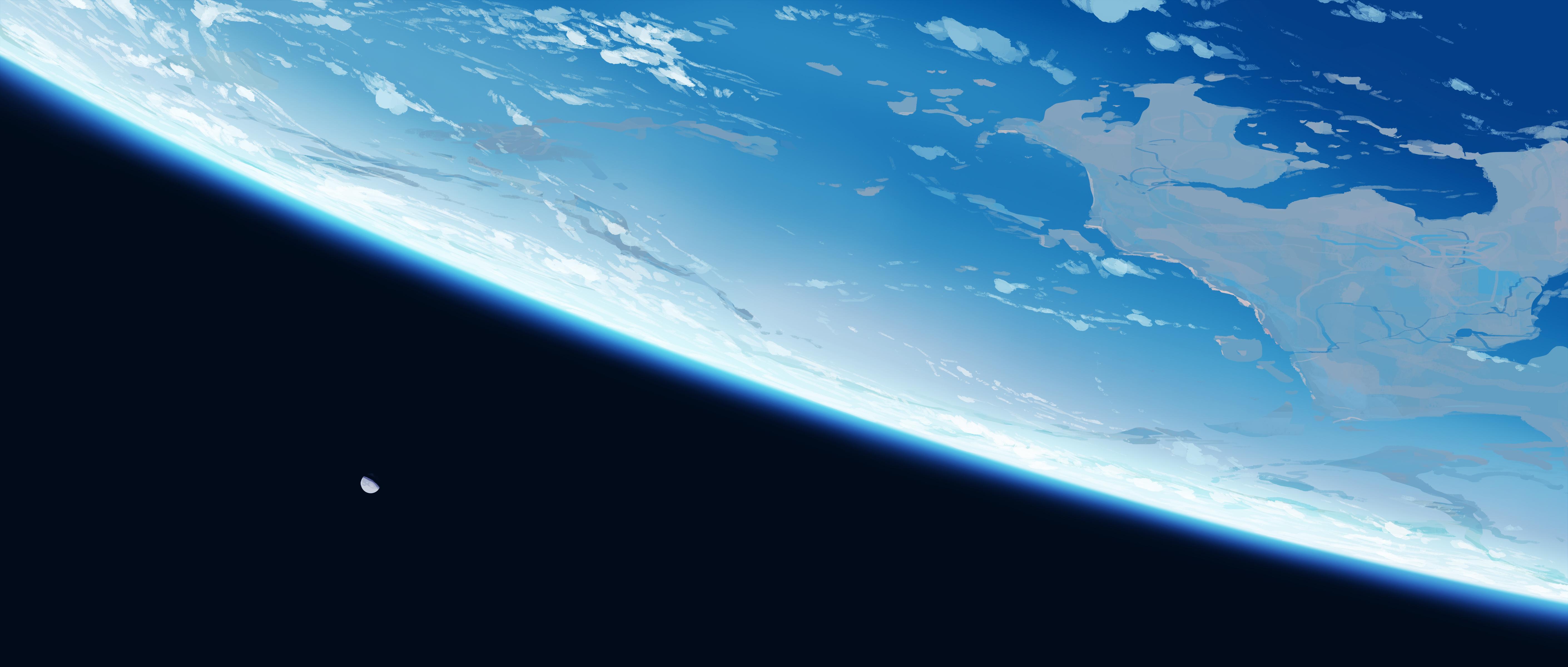 Earth, Space, Planet, Moon 4K Ultrawide Desktop and Mobile Wallpaper Background with a maximum resolution of 5640x2400 px.