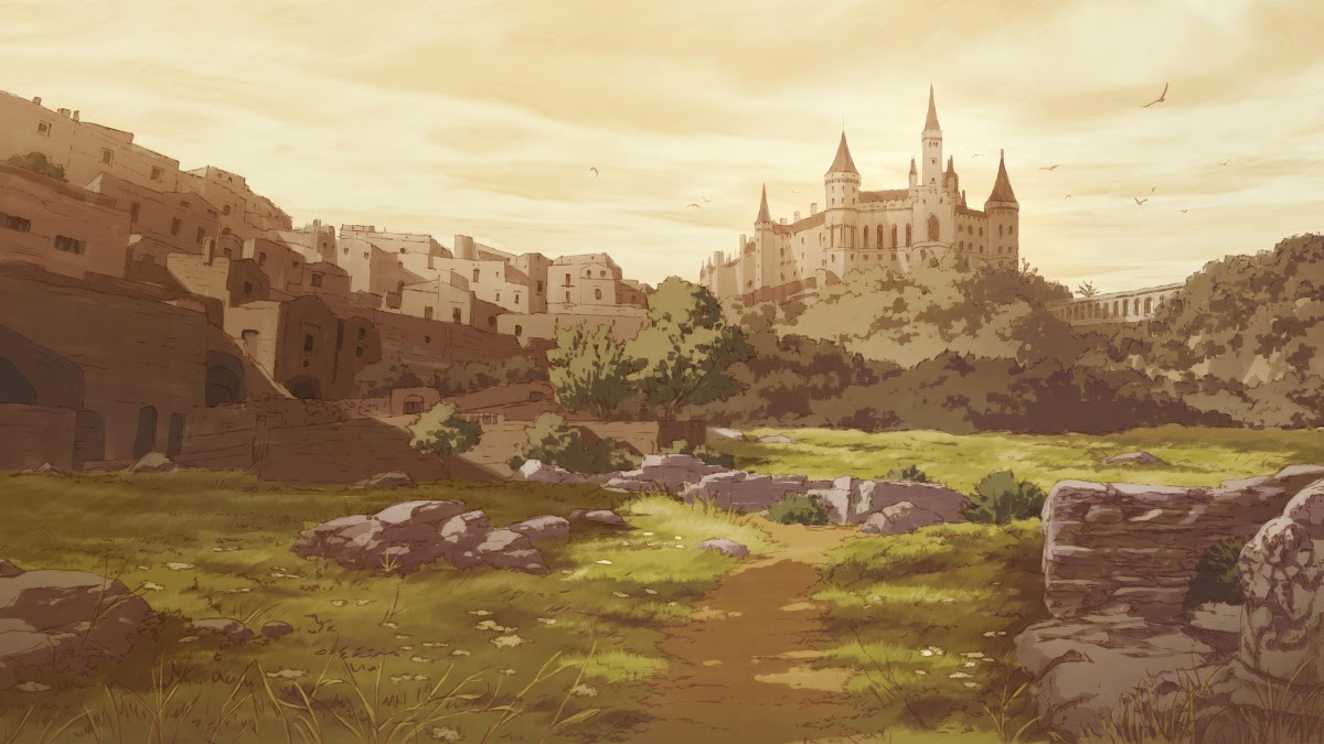 Fantasy Landscape, Castle Illustration, European Town, Anime Artwork 4K Desktop Wallpaper