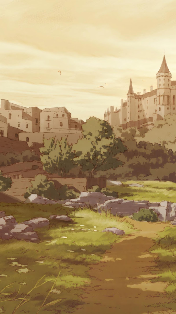 Fantasy Landscape, Castle Illustration, European Town, Anime Artwork 4K Desktop and Mobile Wallpaper Background with a maximum resolution of 3840x2160 px.