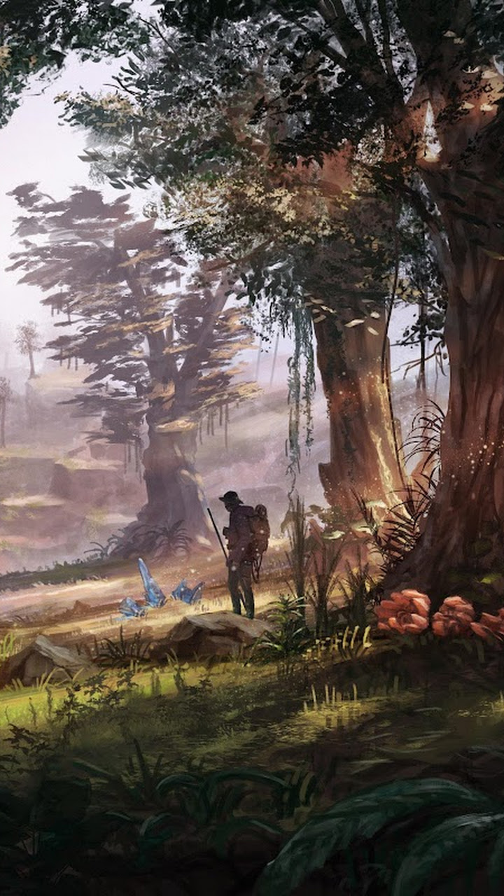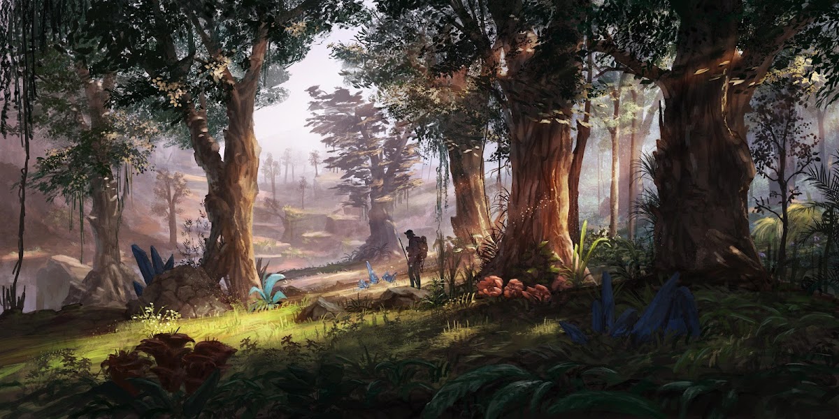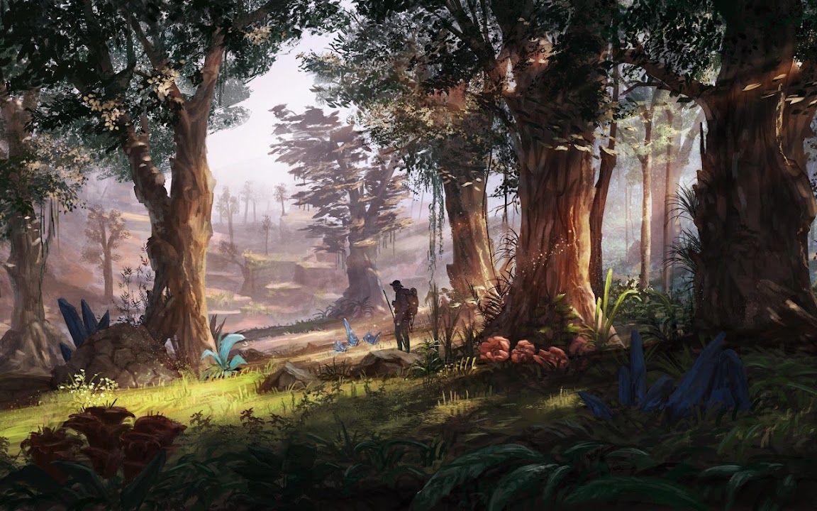 Fantasy Landscape, Digital Painting, Forest Art, Alien World 4K Desktop and Mobile Wallpaper Background with a maximum resolution of 5000x2500 px.