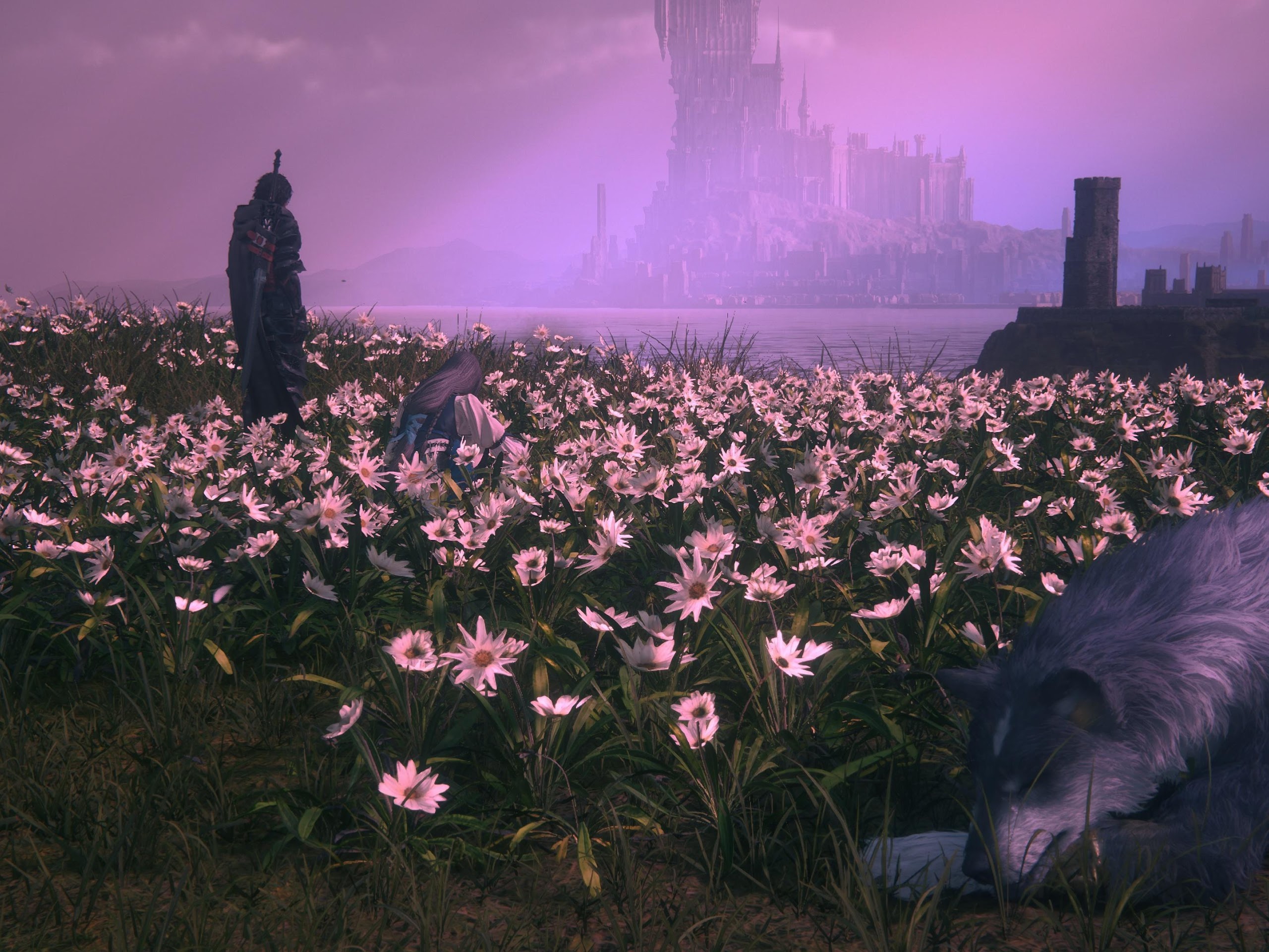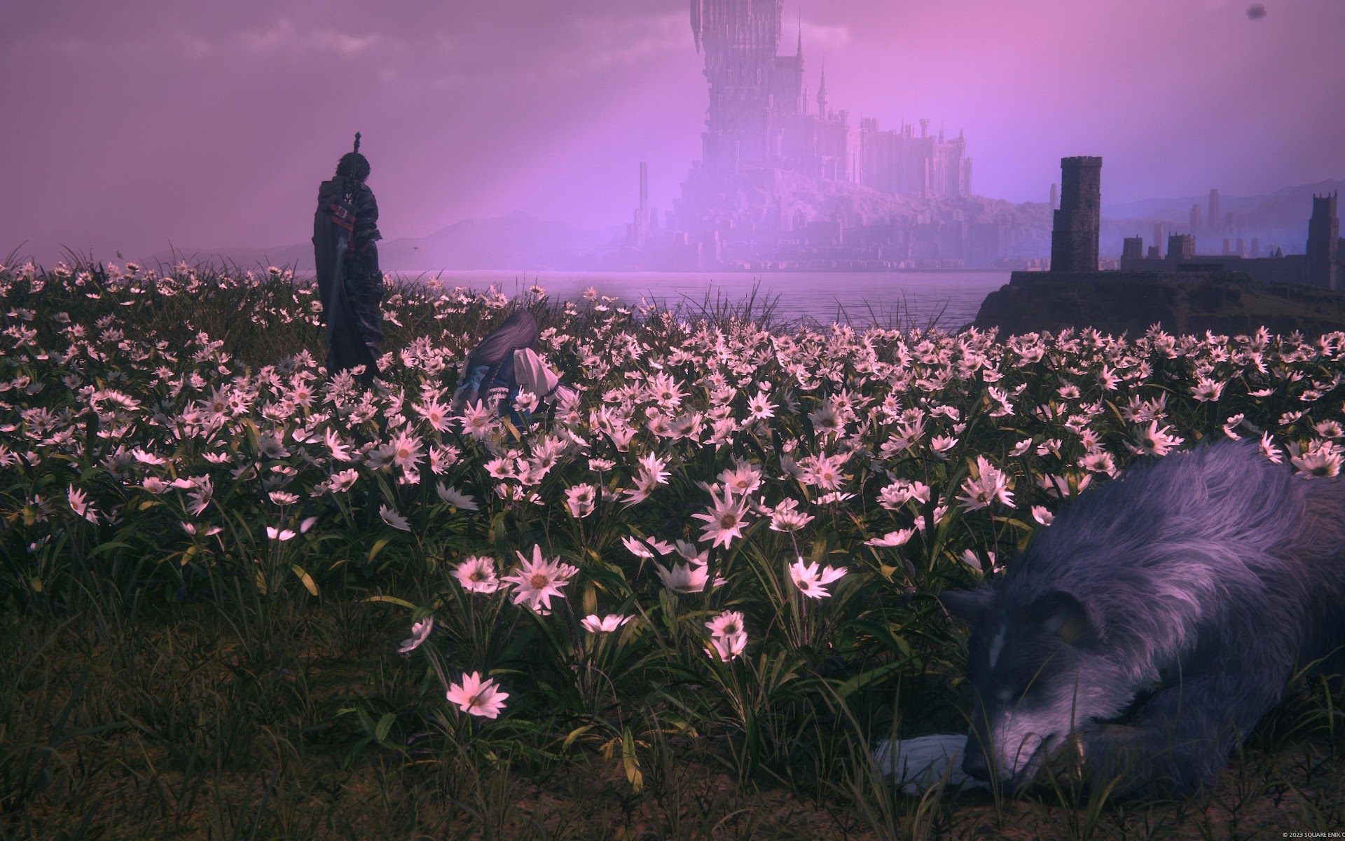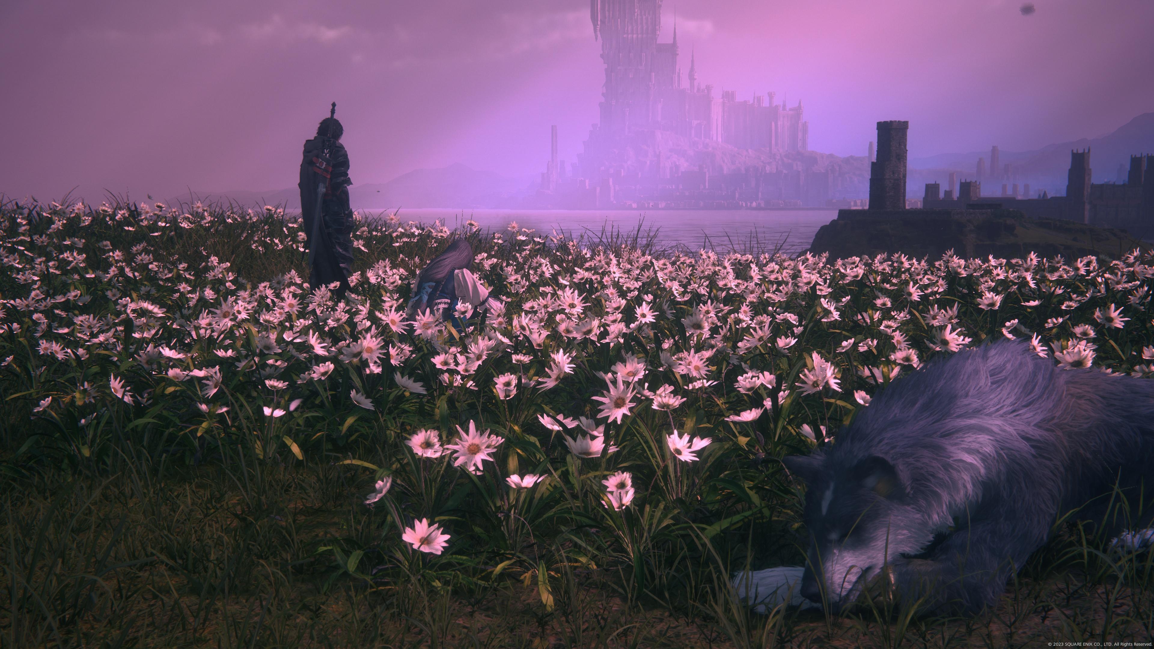 Fantasy Landscape, Wolf, Final Fantasy, Video Game 4K Desktop and Mobile Wallpaper Background with a maximum resolution of 3840x2160 px.