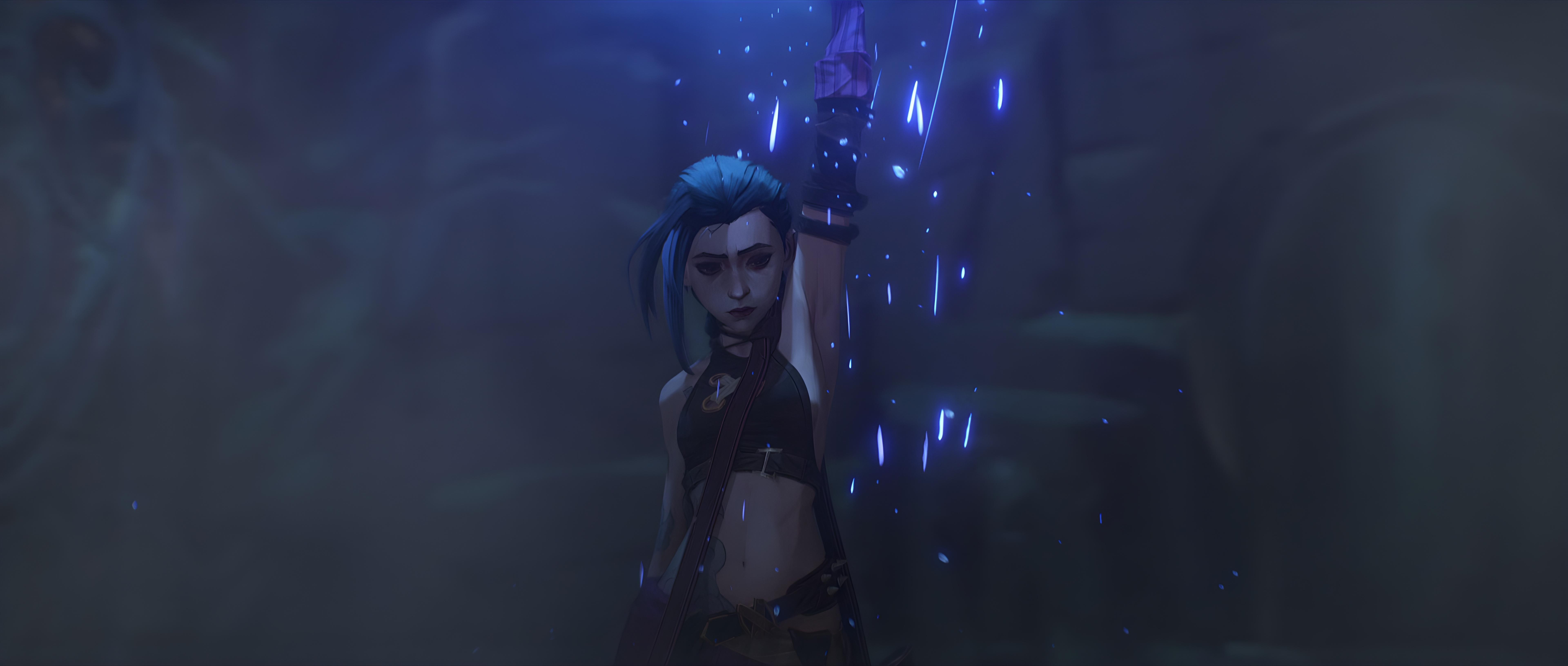 Jinx, Arcane, League Of Legends, Animated Series 5K Ultrawide Desktop and Mobile Wallpaper Background with a maximum resolution of 7680x3265 px.