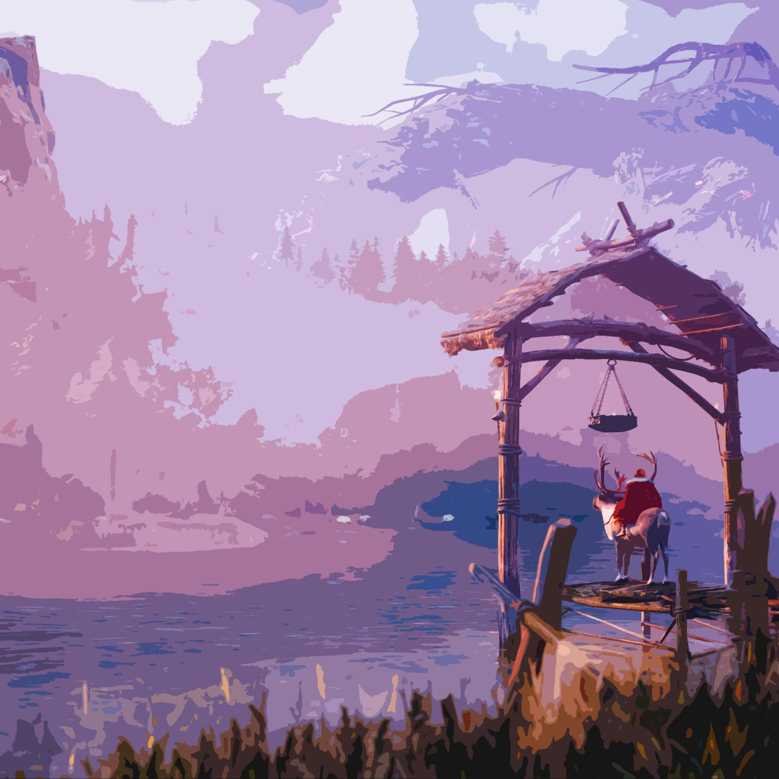 Lake, Mountains, Reindeer, Artwork 4K Desktop Wallpaper