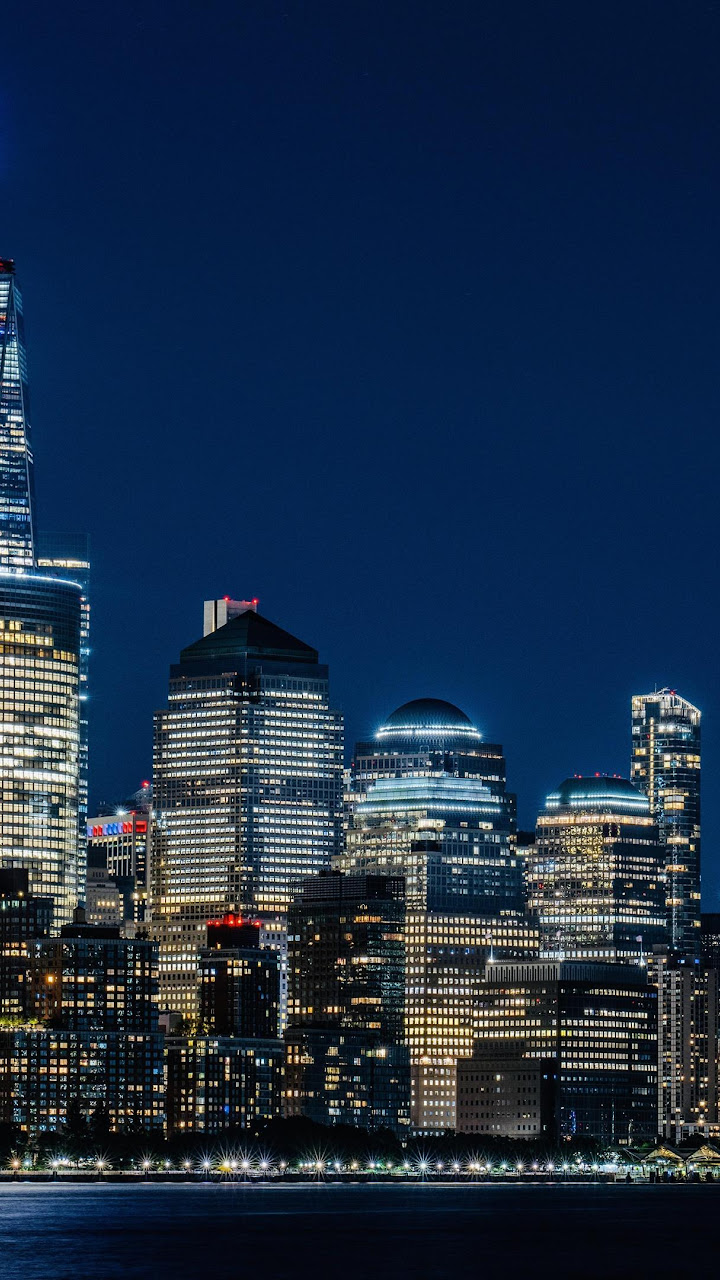 Manhattan Skyline, New York City, Nightscape, City Lights 4K Desktop and Mobile Wallpaper Background with a maximum resolution of 3840x2160 px.