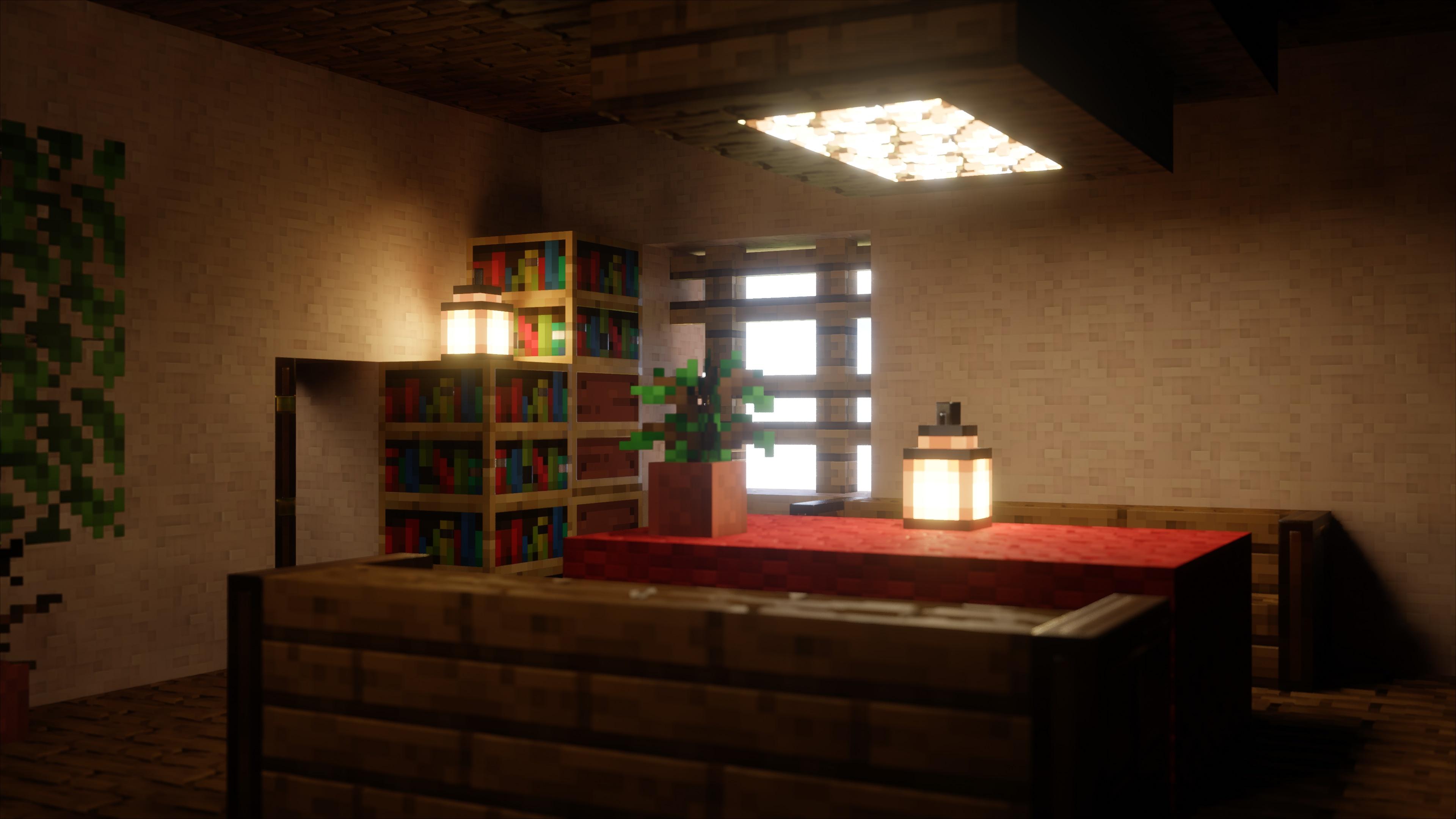 Minecraft, Interior Design, Pixel Art, Virtual Room 4K Desktop and Mobile Wallpaper Background with a maximum resolution of 3840x2160 px.