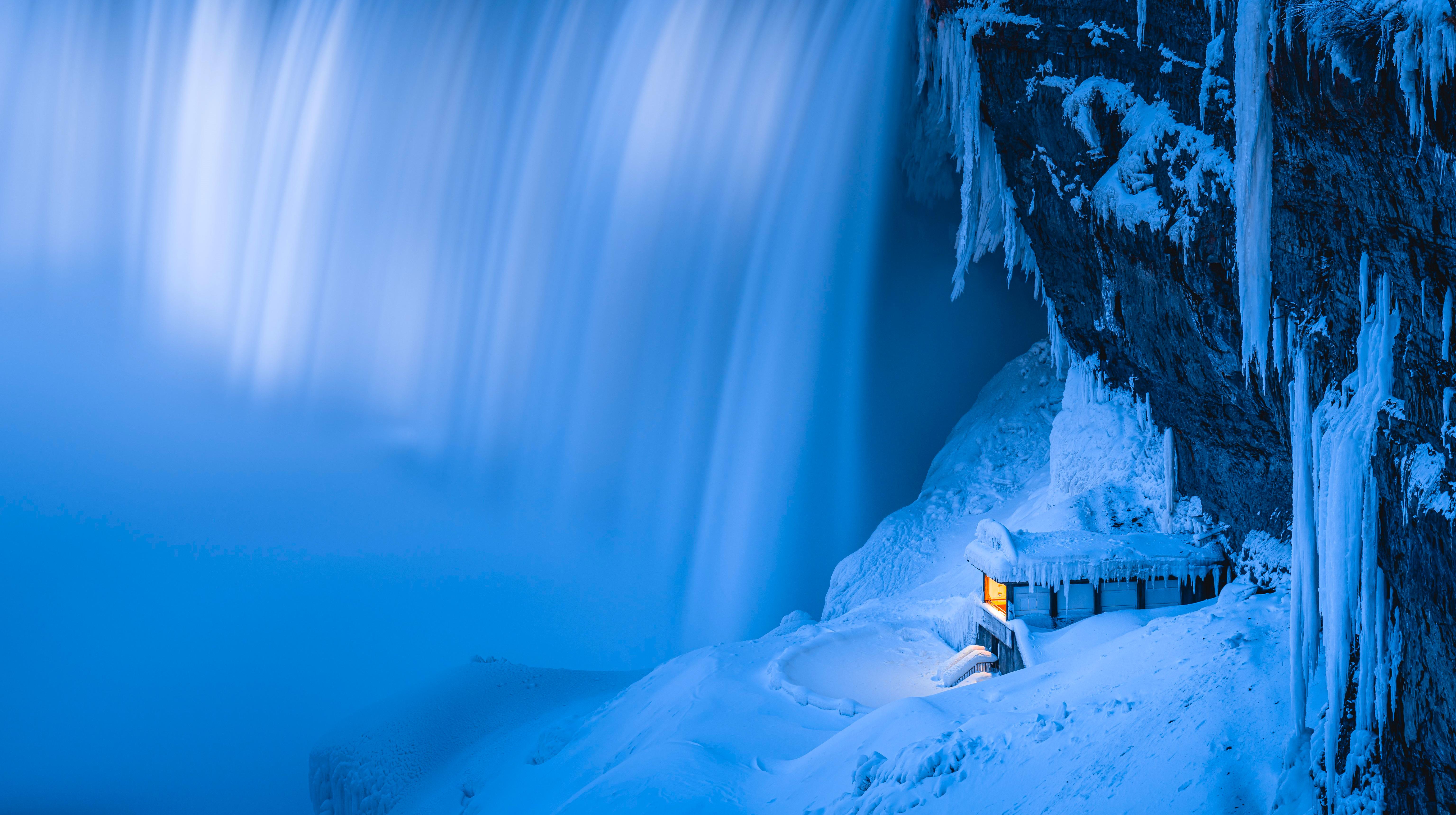Niagara Falls, Winter Landscape, Frozen Waterfall, Icicles 5K Desktop Wallpaper