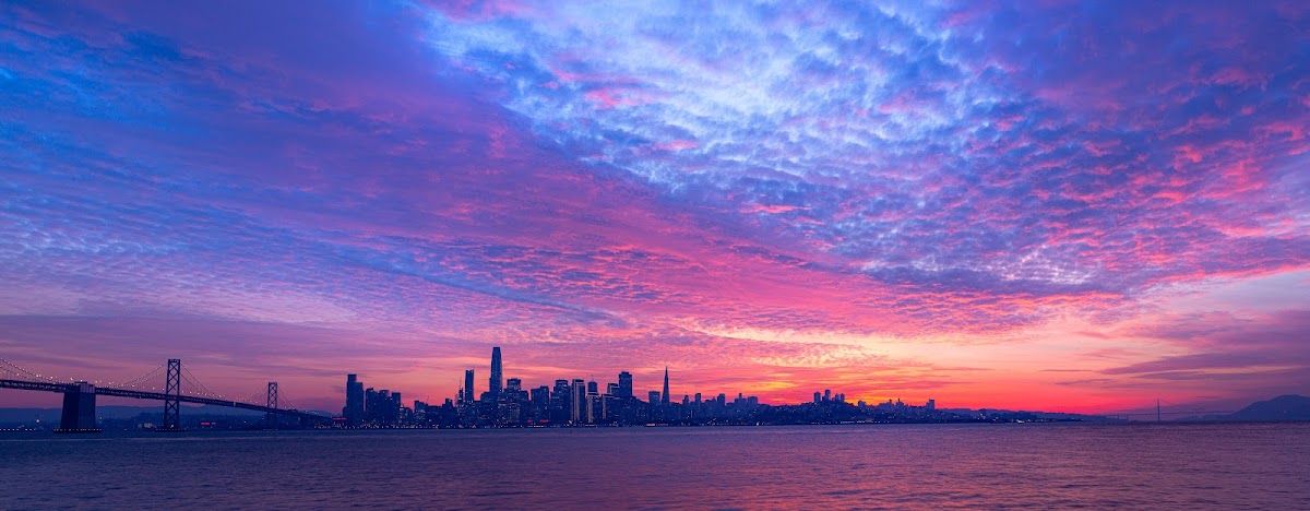 San Francisco, Sunset, Skyline, Bridge 4K Desktop and Mobile Wallpaper Background with a maximum resolution of 6144x2395 px.