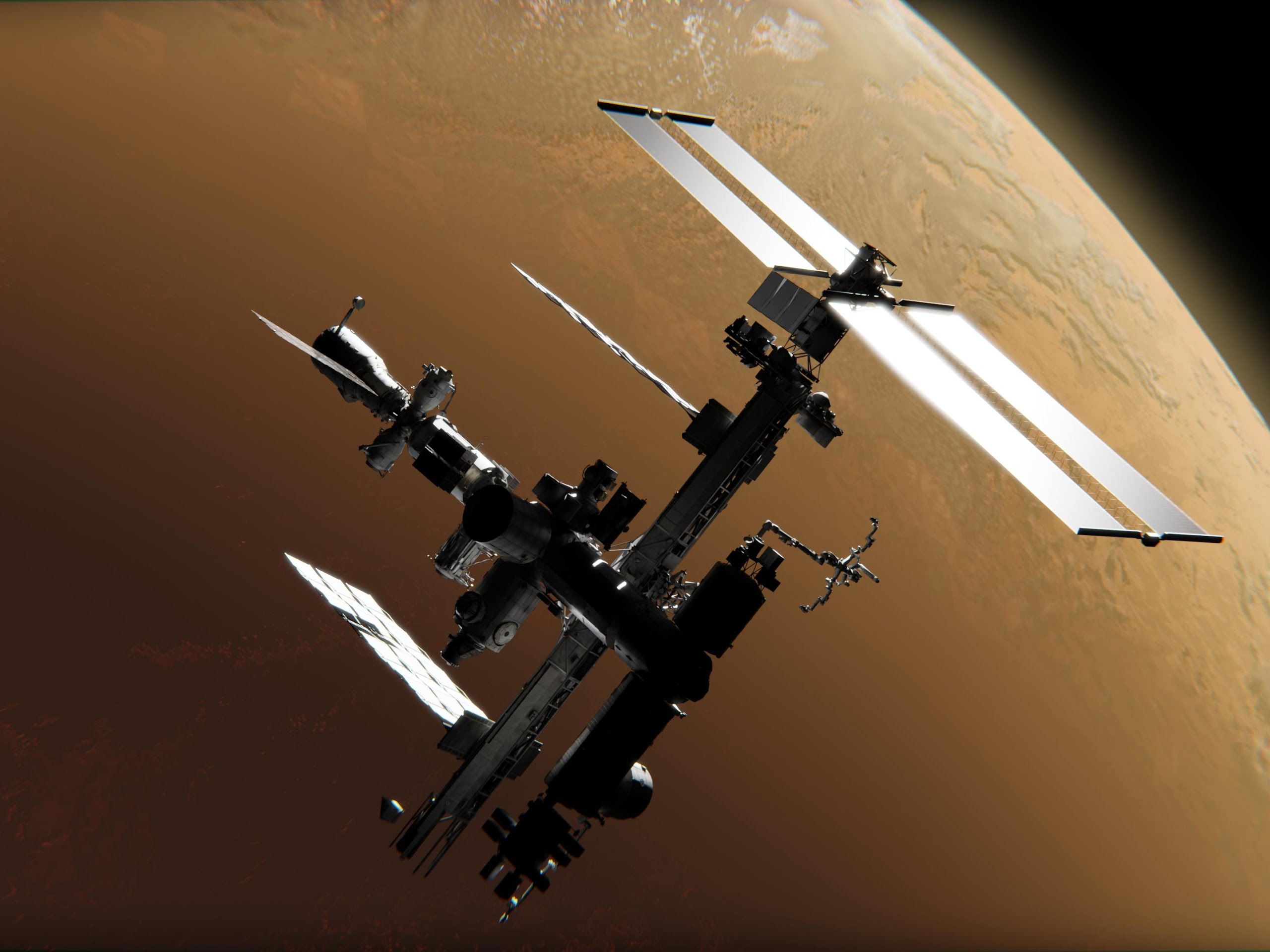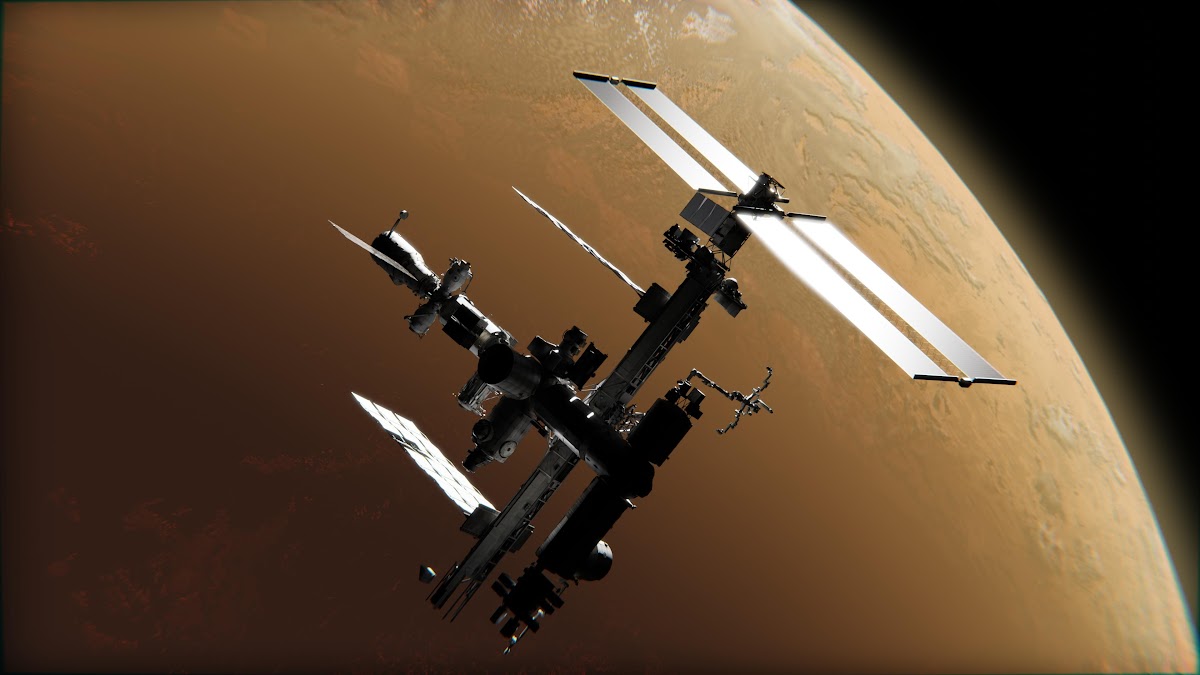 Space Station, Mars, Orbit, Spacecraft 4K Desktop and Mobile Wallpaper Background with a maximum resolution of 3840x2160 px.