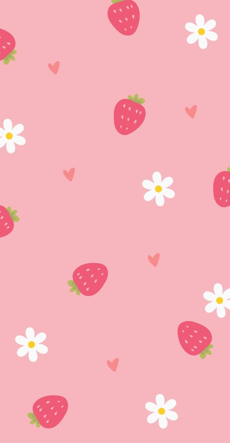 Strawberry, Pink, Flower, Cute iPhone Phone Wallpaper