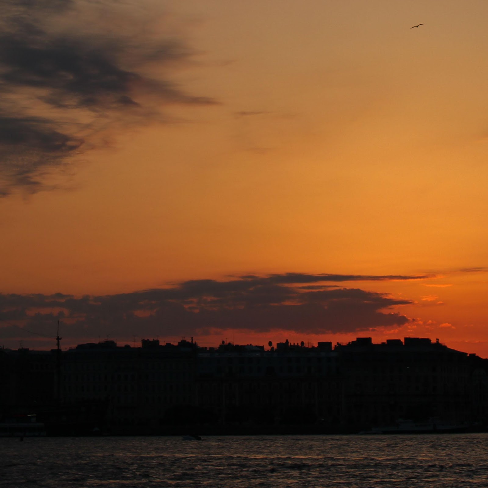 Sunset, Cityscape, Silhouette, Water 4K Desktop Wallpaper