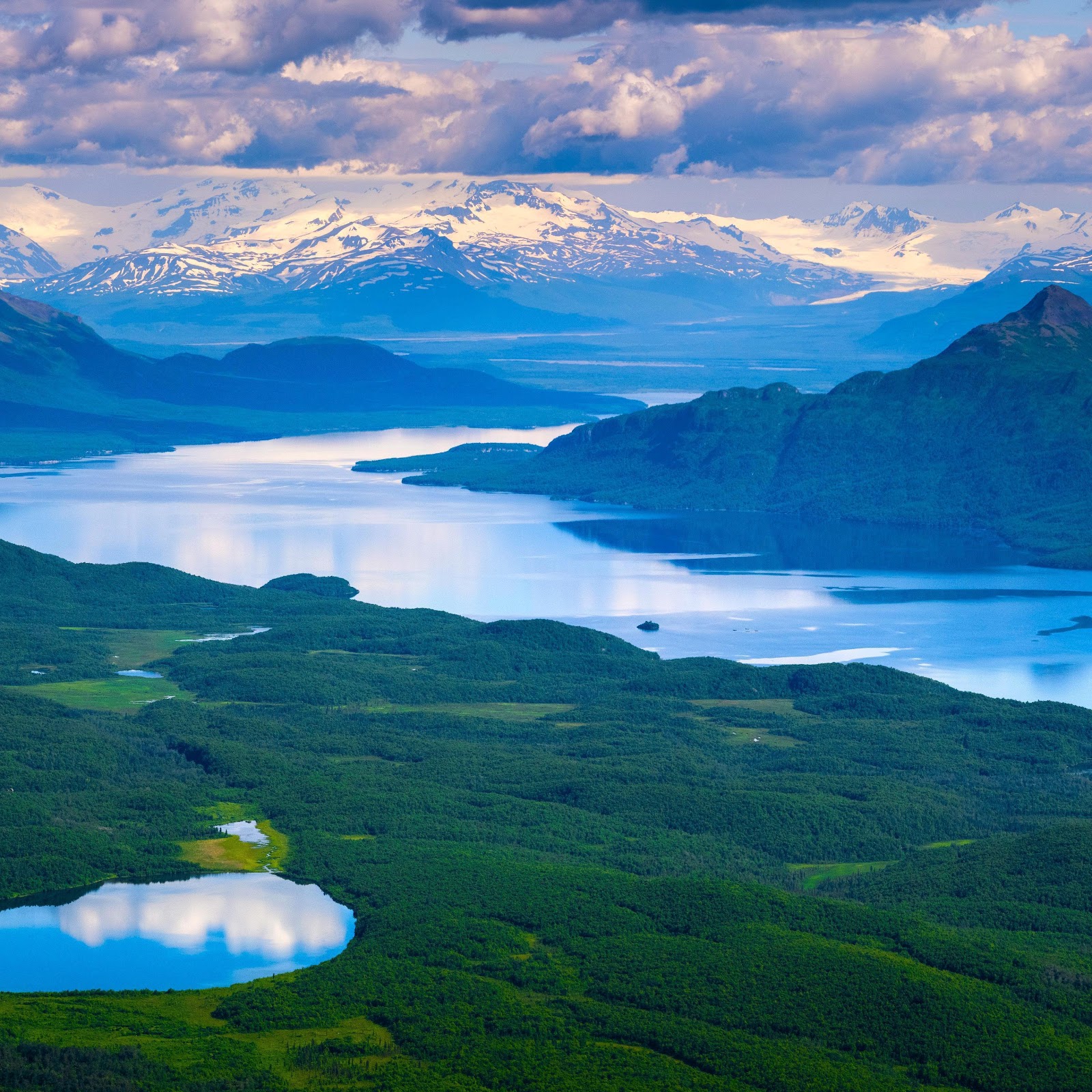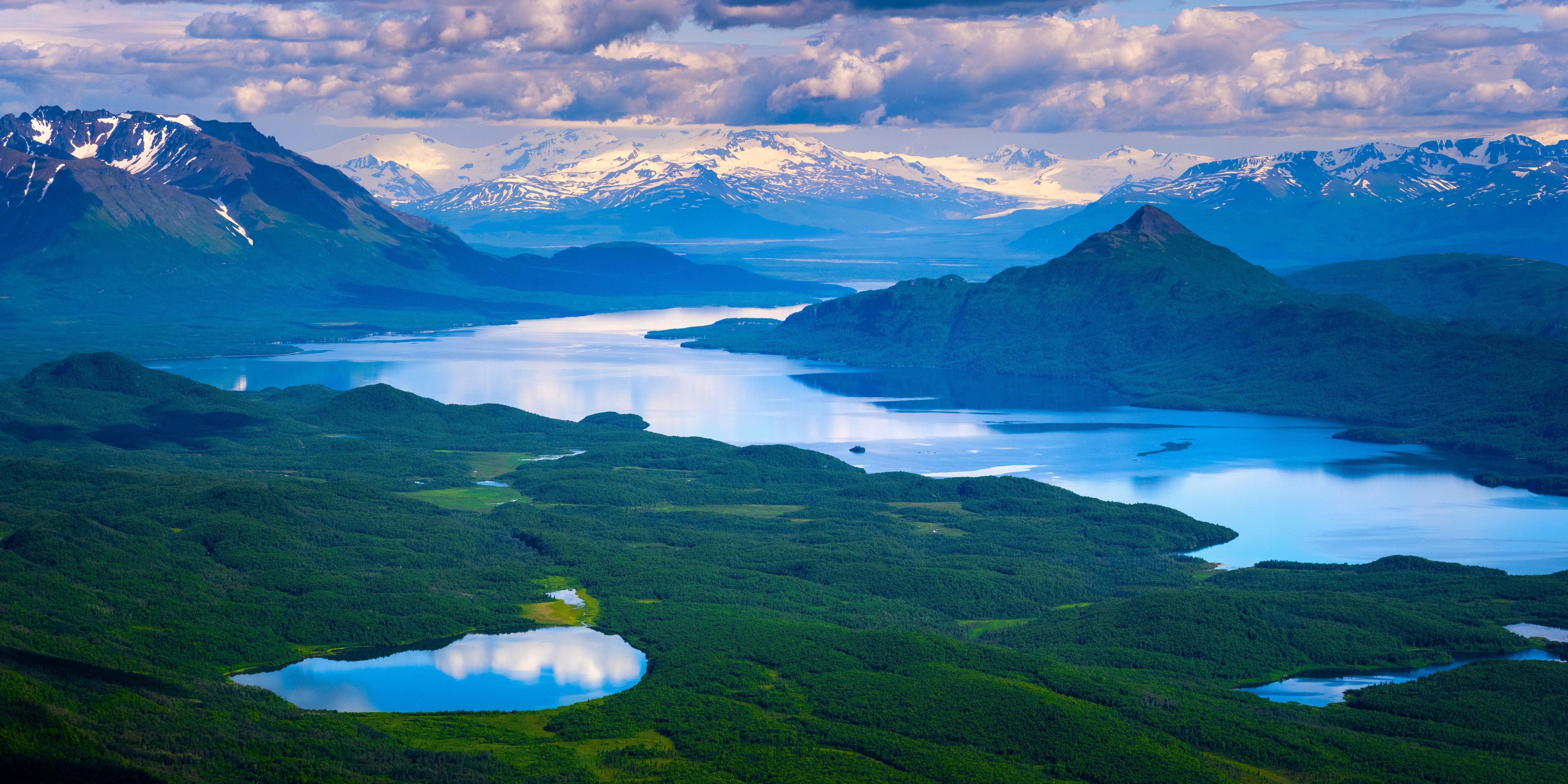 Alaska, Lake, Mountains, Landscape 5K Desktop and Mobile Wallpaper Background with a maximum resolution of 6144x3072 px.