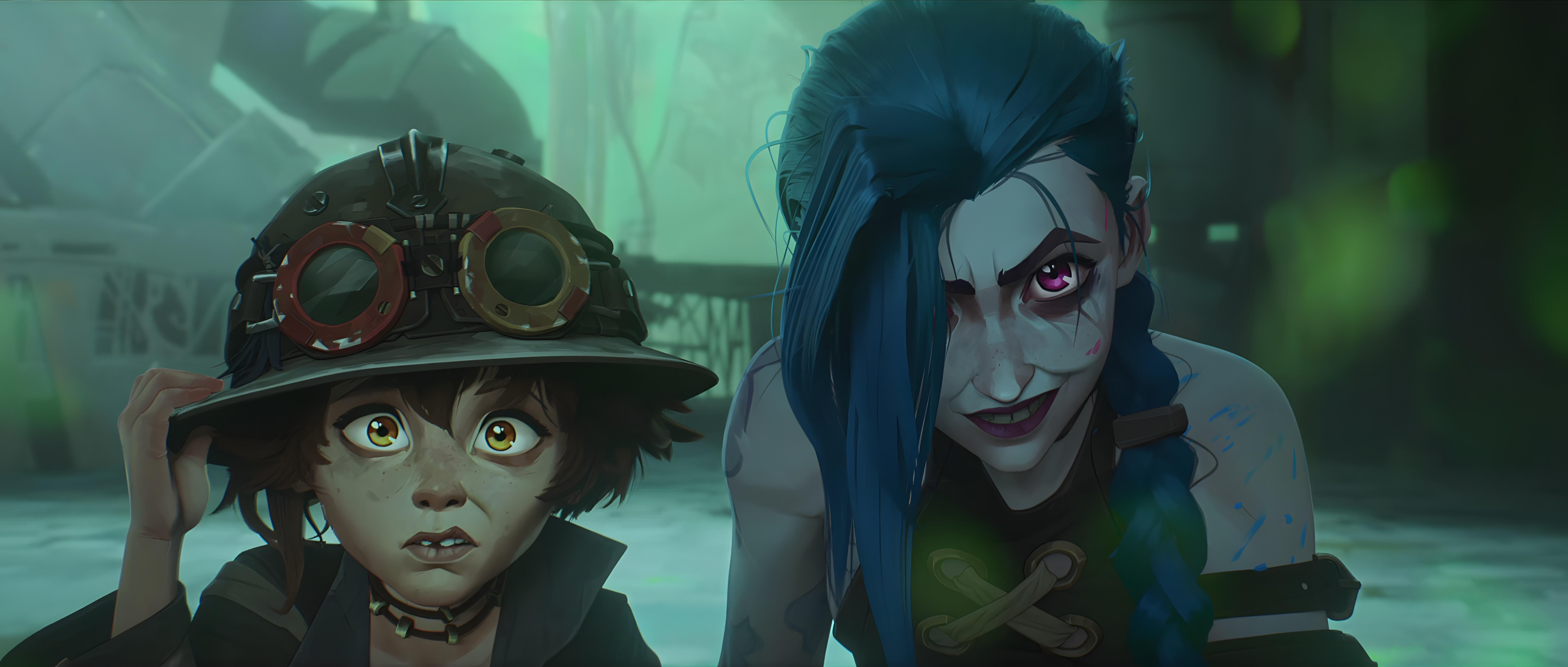Arcane, League Of Legends, Jinx, Vi 5K Ultrawide Desktop and Mobile Wallpaper Background with a maximum resolution of 7680x3268 px.