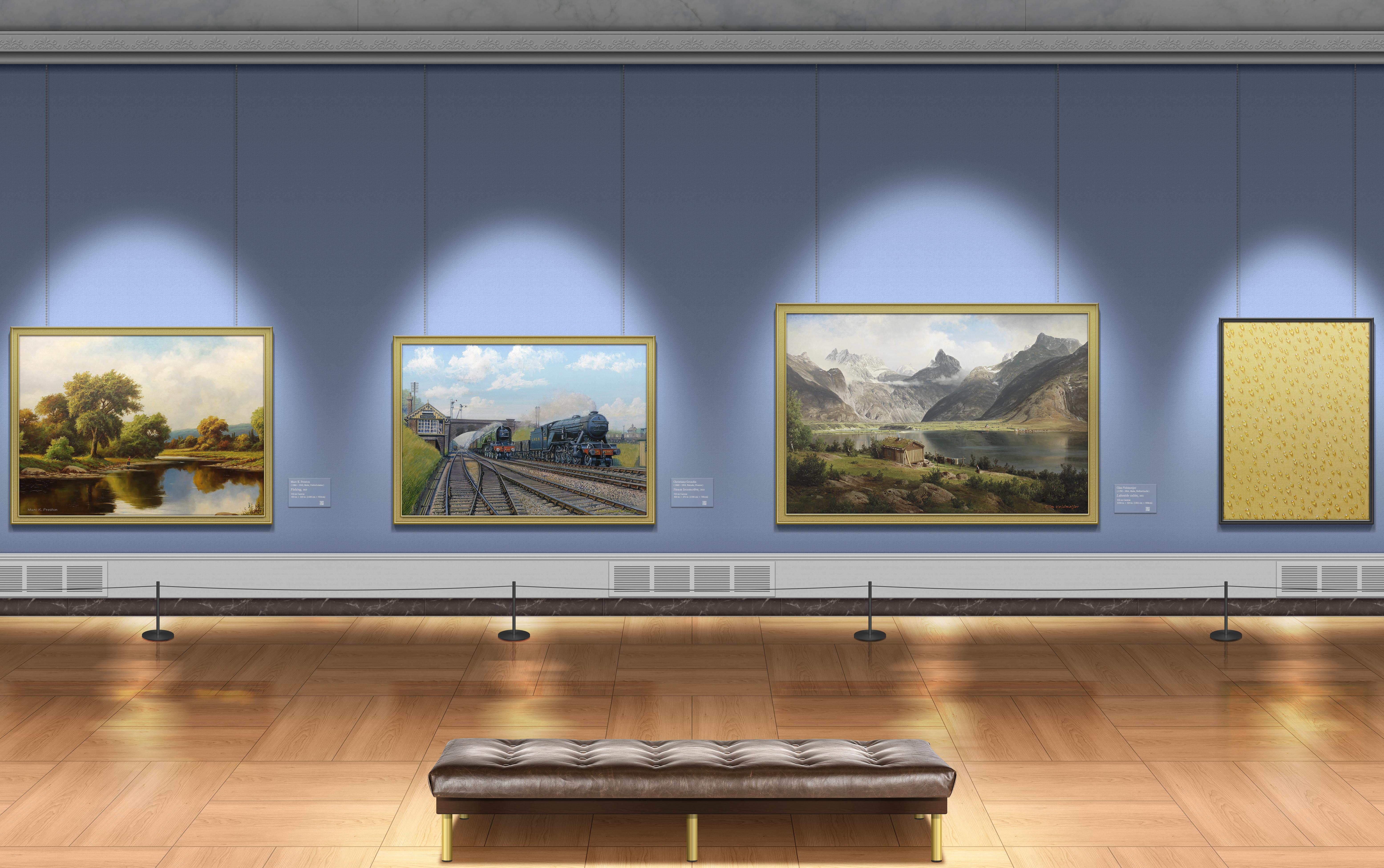 Art Gallery, Museum, Paintings, Interior 5K Desktop and Mobile Wallpaper Background with a maximum resolution of 6220x3900 px.