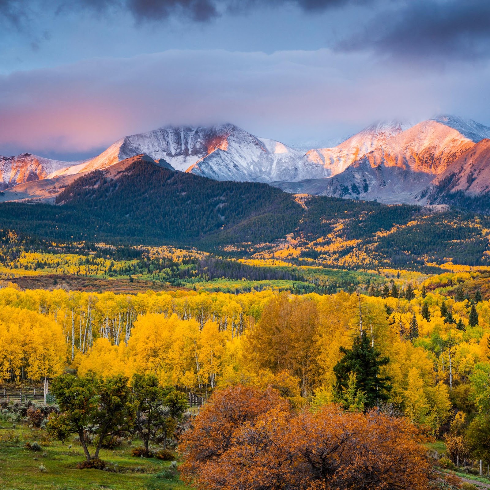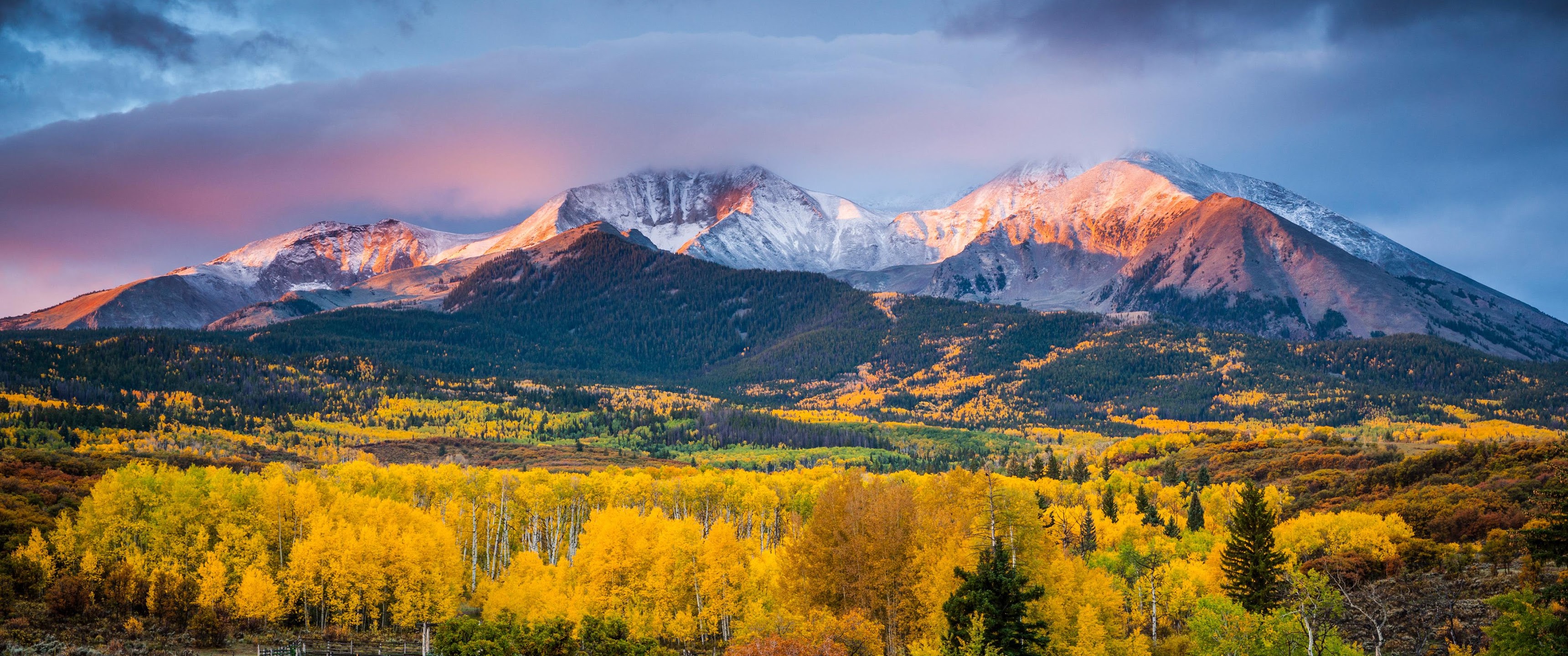 Autumn Landscape, Mountain Scenery, Fall Foliage, Colorado Rockies 4K Desktop and Mobile Wallpaper Background with a maximum resolution of 3840x2160 px.