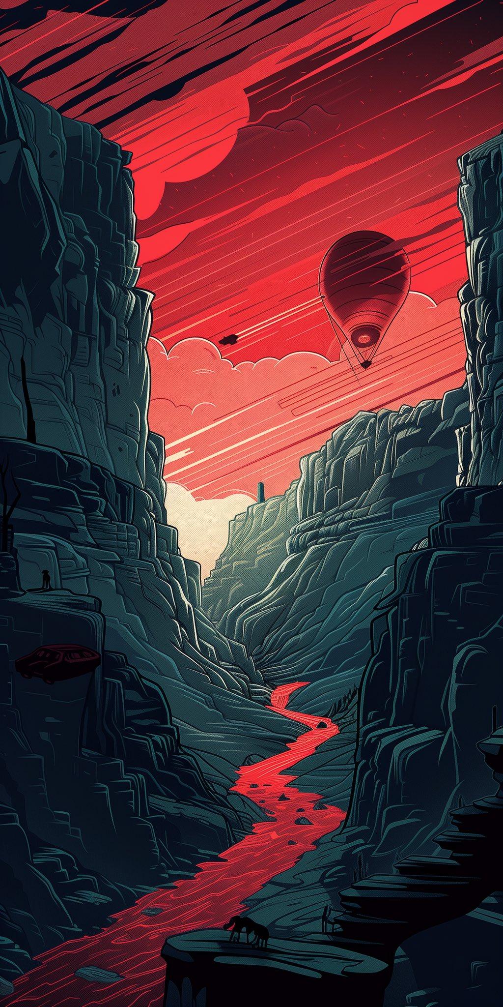 Canyon Landscape, Hot Air Balloon, Red River, Fantasy Art iPhone Phone Wallpaper