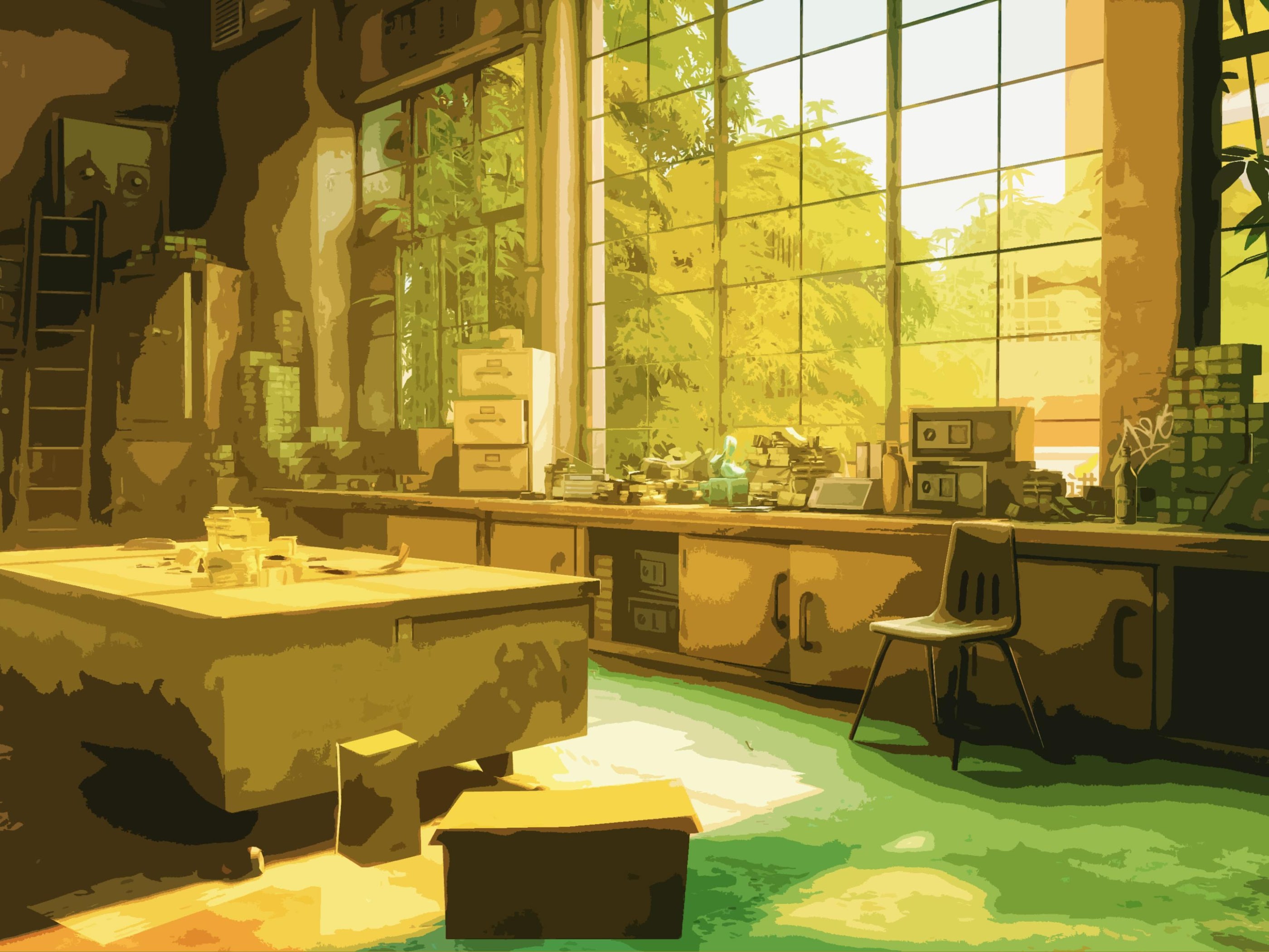 Cartoon Interior, Lab, Workshop, Office 4K Desktop and Mobile Wallpaper Background with a maximum resolution of 3840x2160 px.