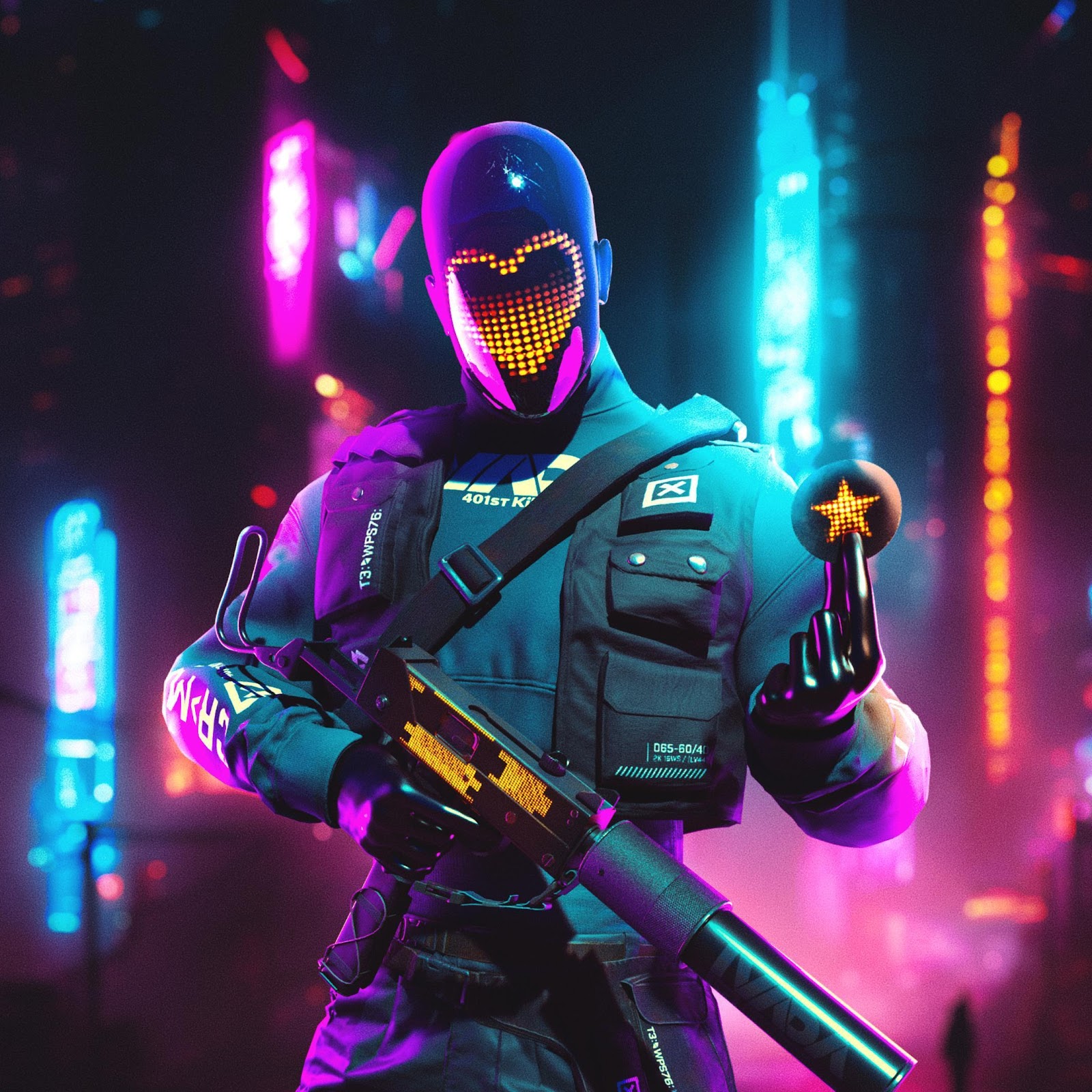 Cyberpunk, Futuristic, Neon, Warrior 4K Desktop and Mobile Wallpaper Background with a maximum resolution of 3840x2160 px.