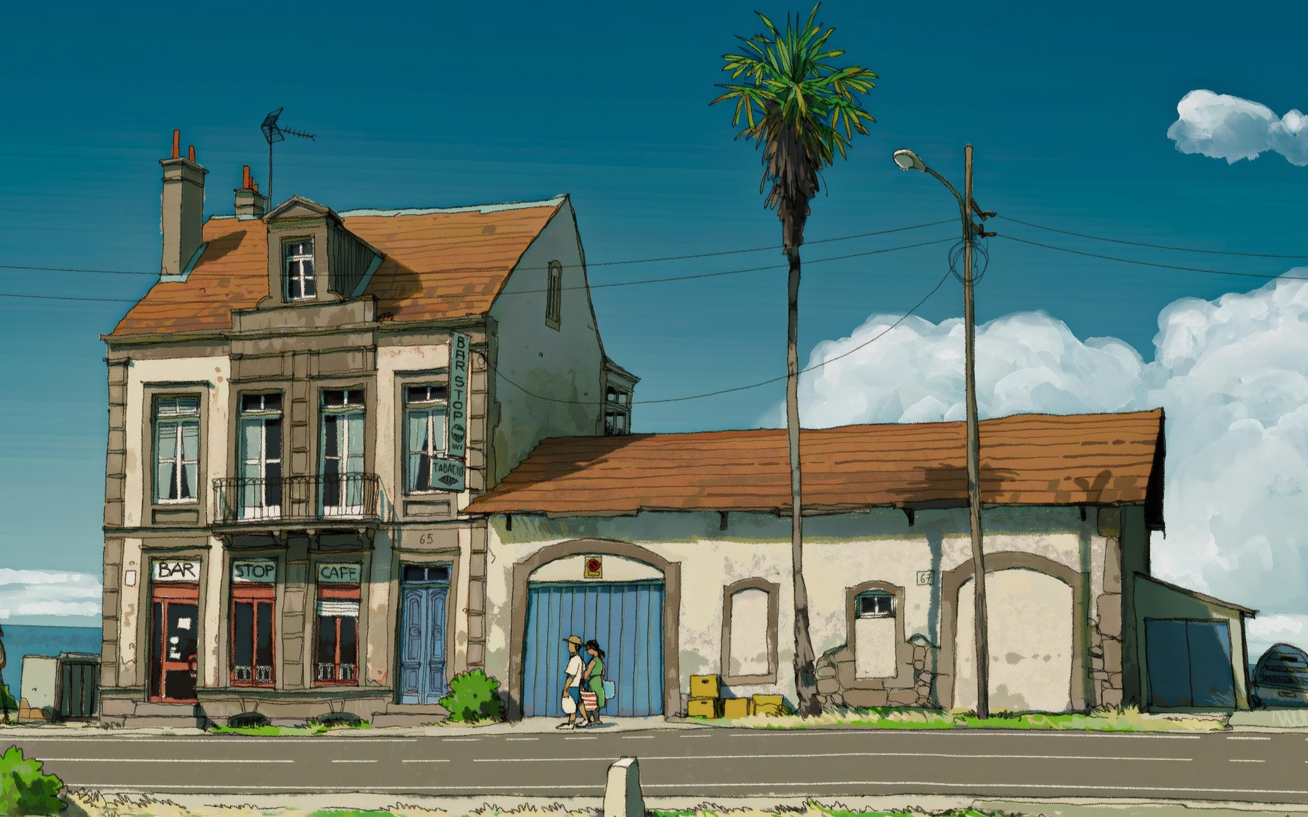 Illustration, Coastal, Town, Cartoon 4K PC Wallpaper