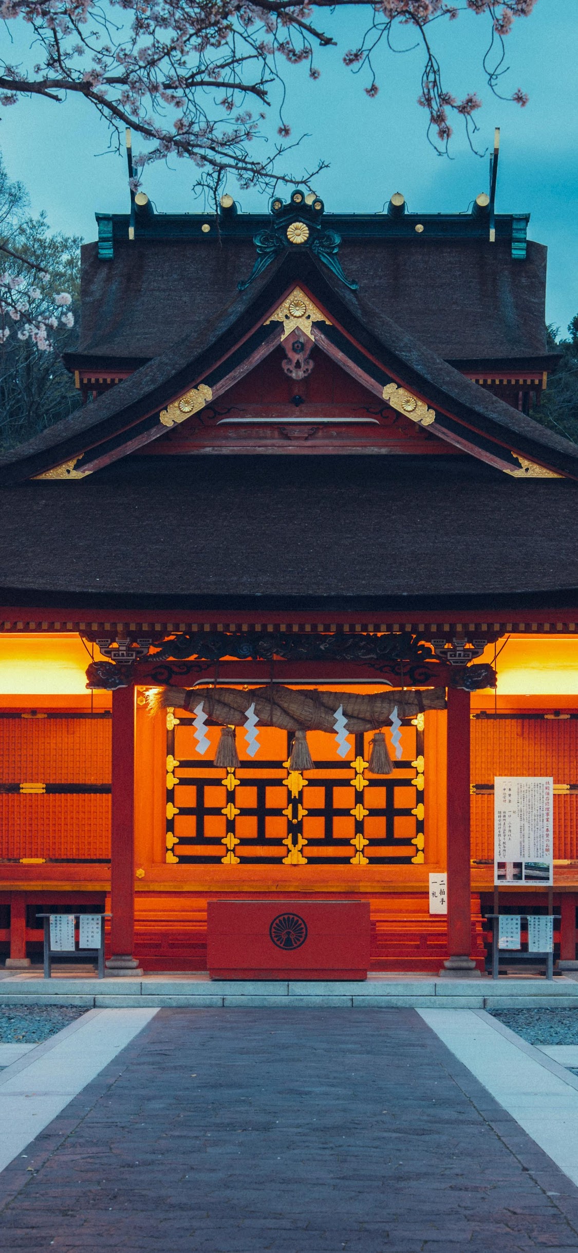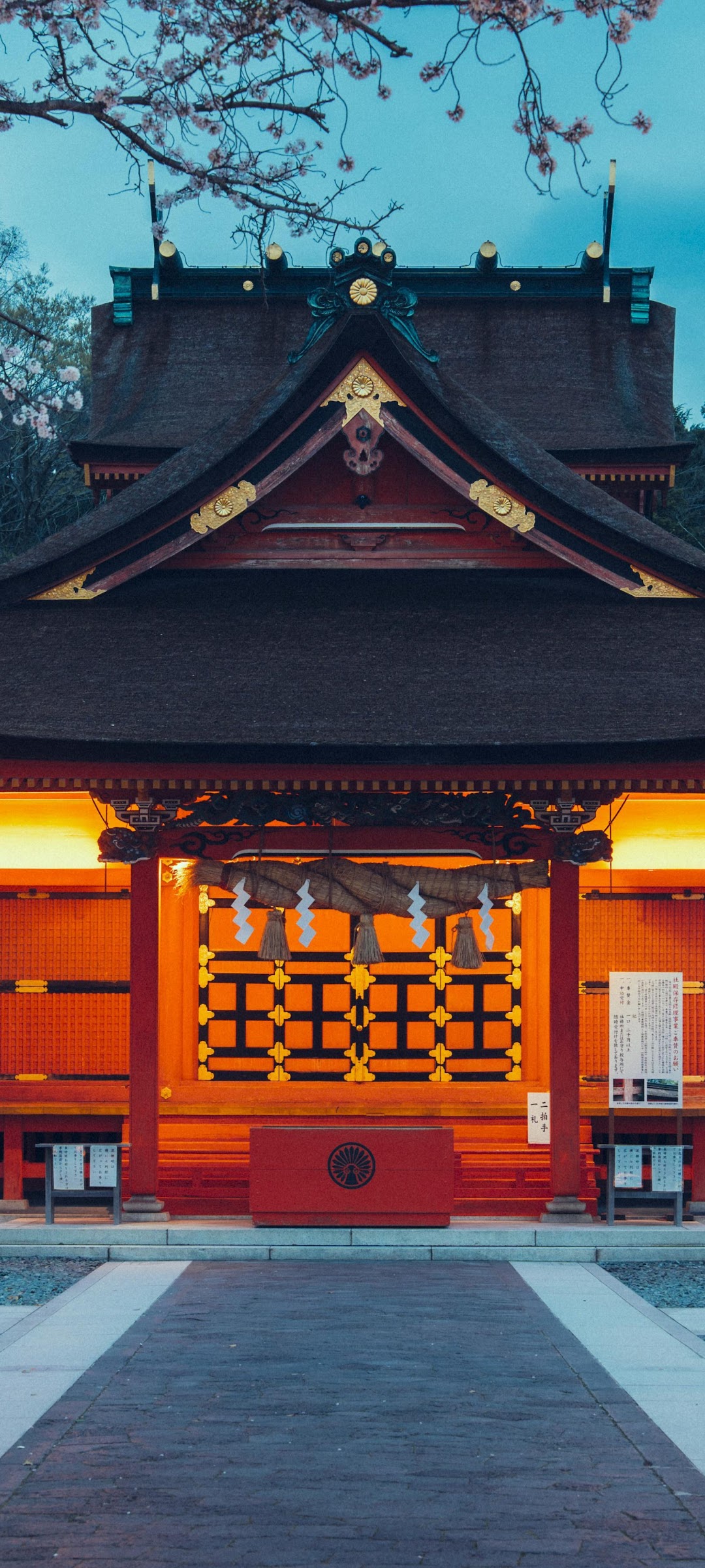 Japanese Shrine, Asian Architecture, Cherry Blossom, Religious Site 5K Phone Wallpaper