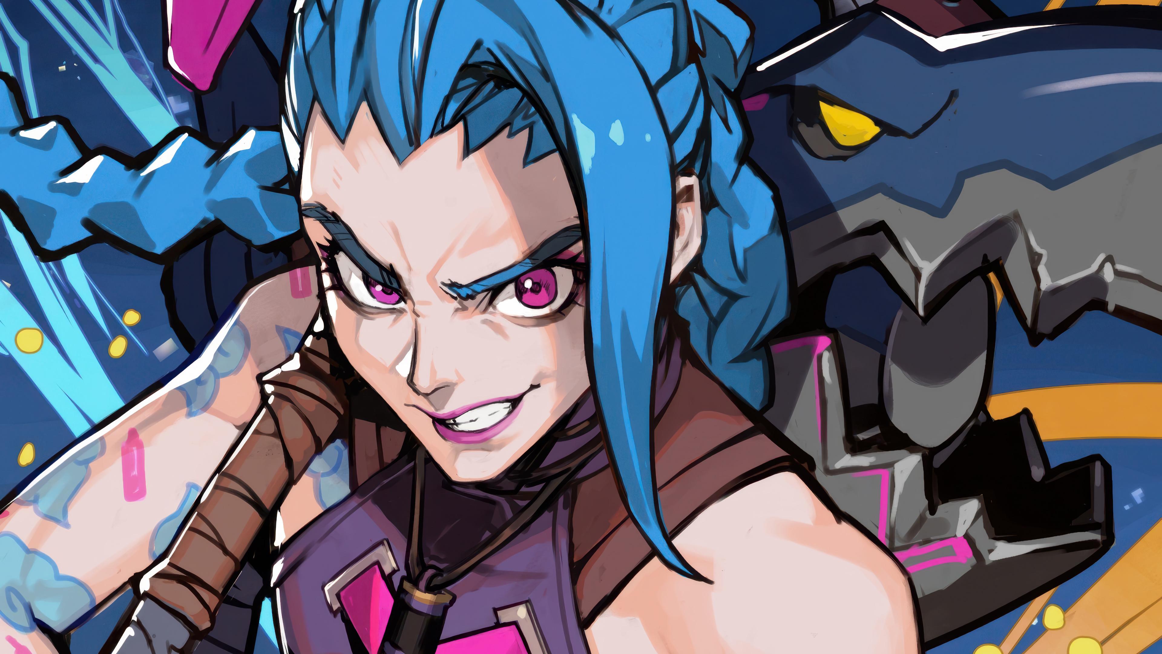 Jinx, Arcane, League Of Legends, Fanart 4K Desktop and Mobile Wallpaper Background with a maximum resolution of 3840x2160 px.