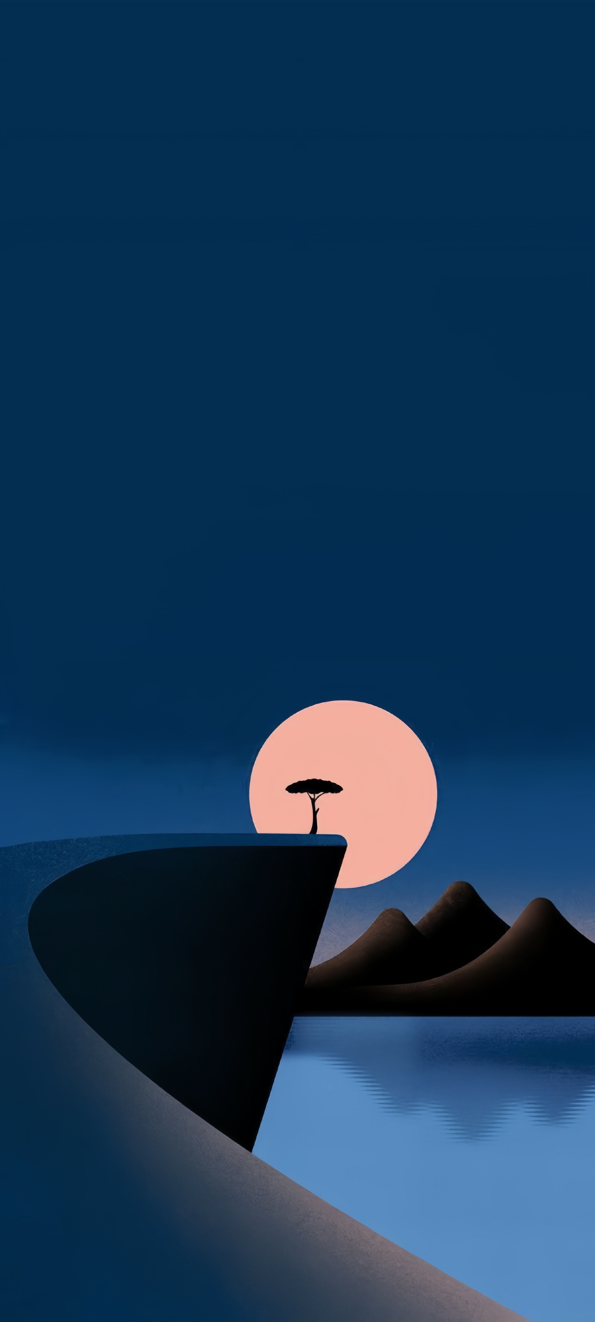 Minimalist Landscape, Night Scene, Nature Art, Calm Lake 2K iPhone Wallpaper Background with a maximum resolution of 2000x4444 px.