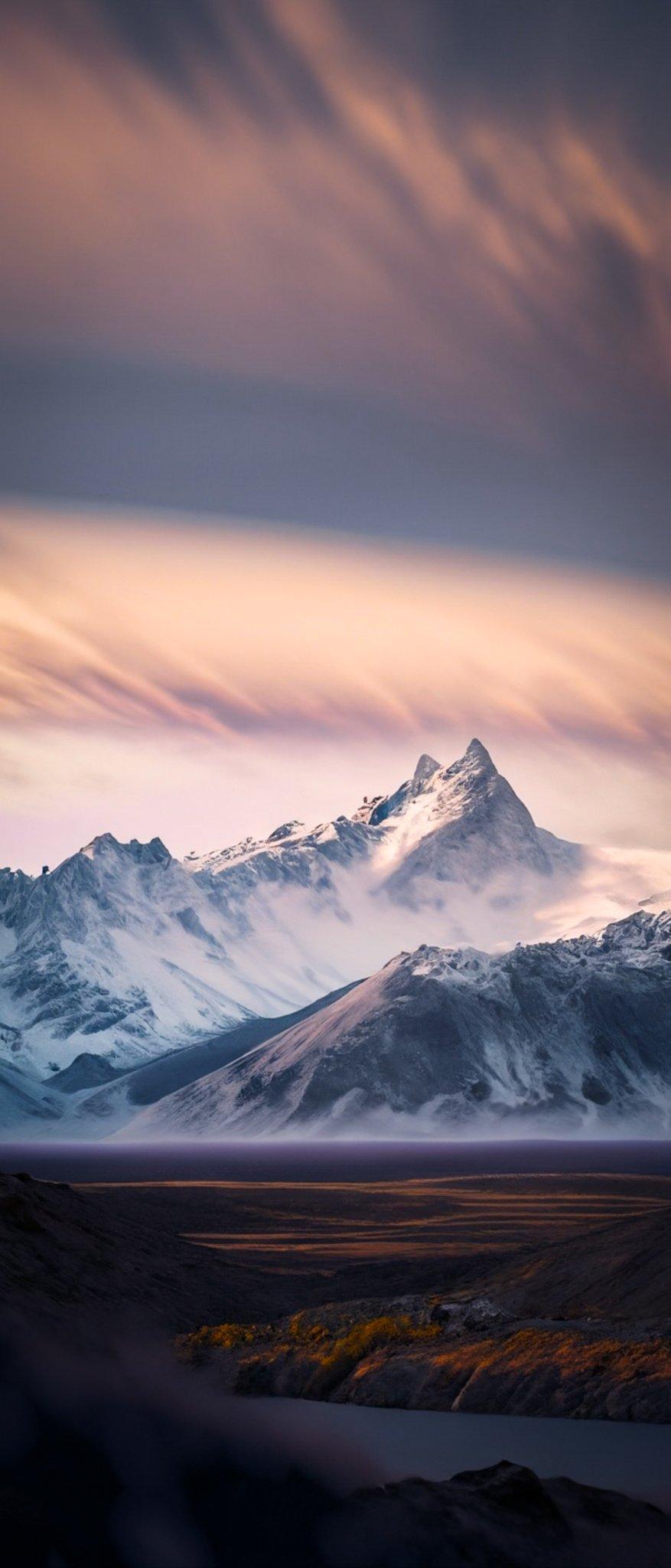 Mountain Landscape, Snowy Peaks, Iceland Scenery, Nordic Nature iPhone Wallpaper Background (877x2048)