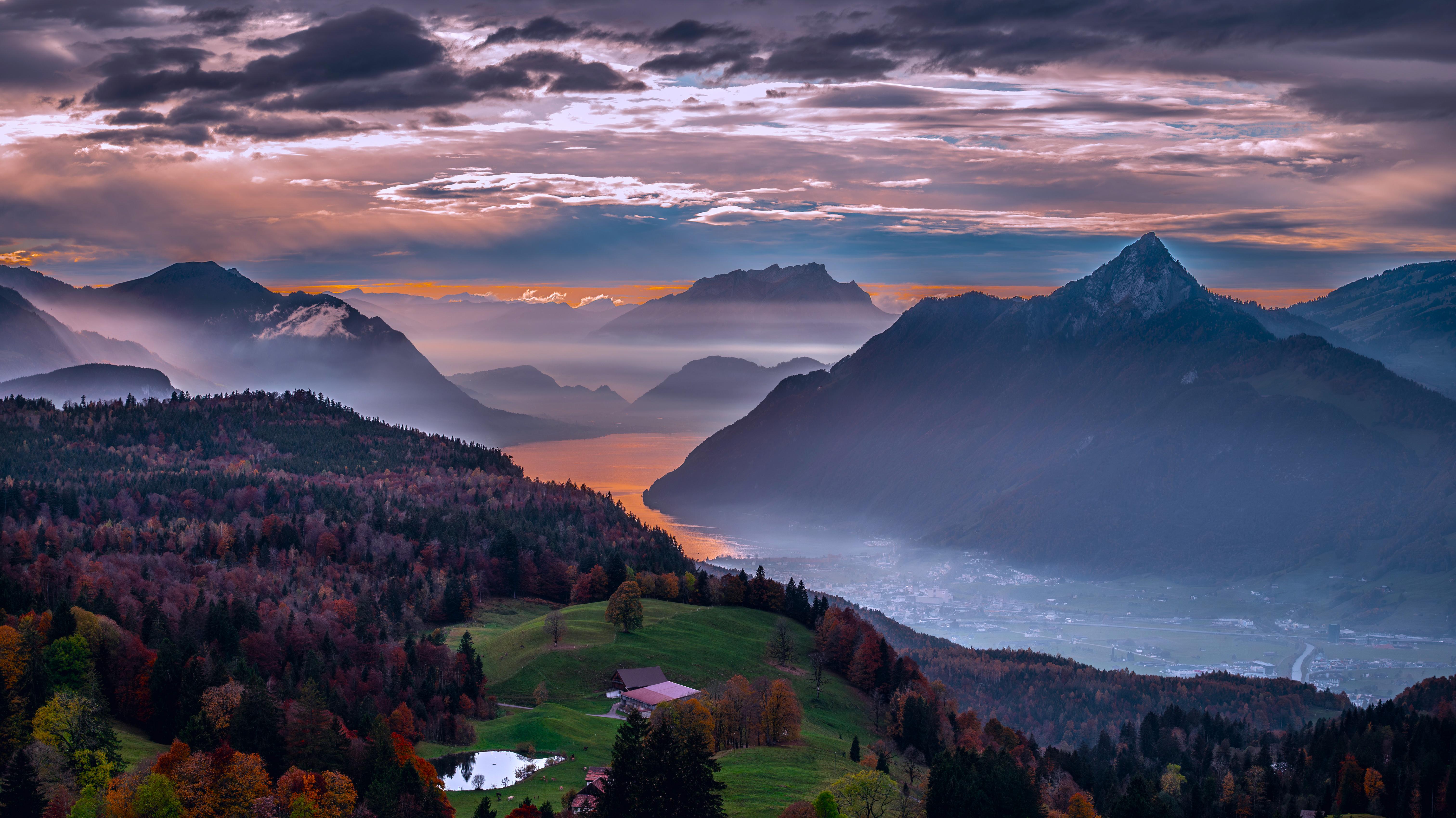 Mountain Landscape, Switzerland, Autumn, Scenic View 5K Desktop Wallpaper