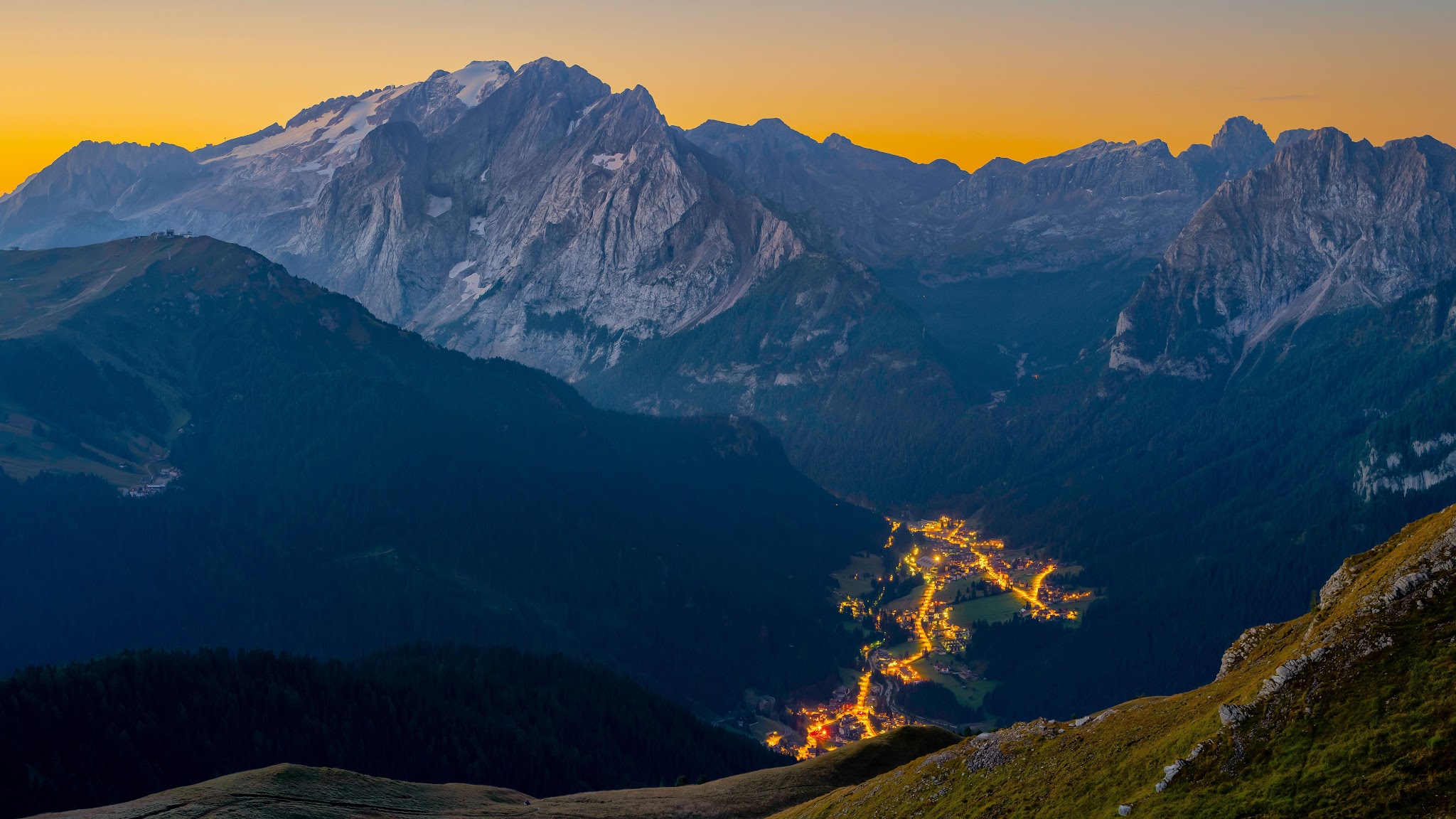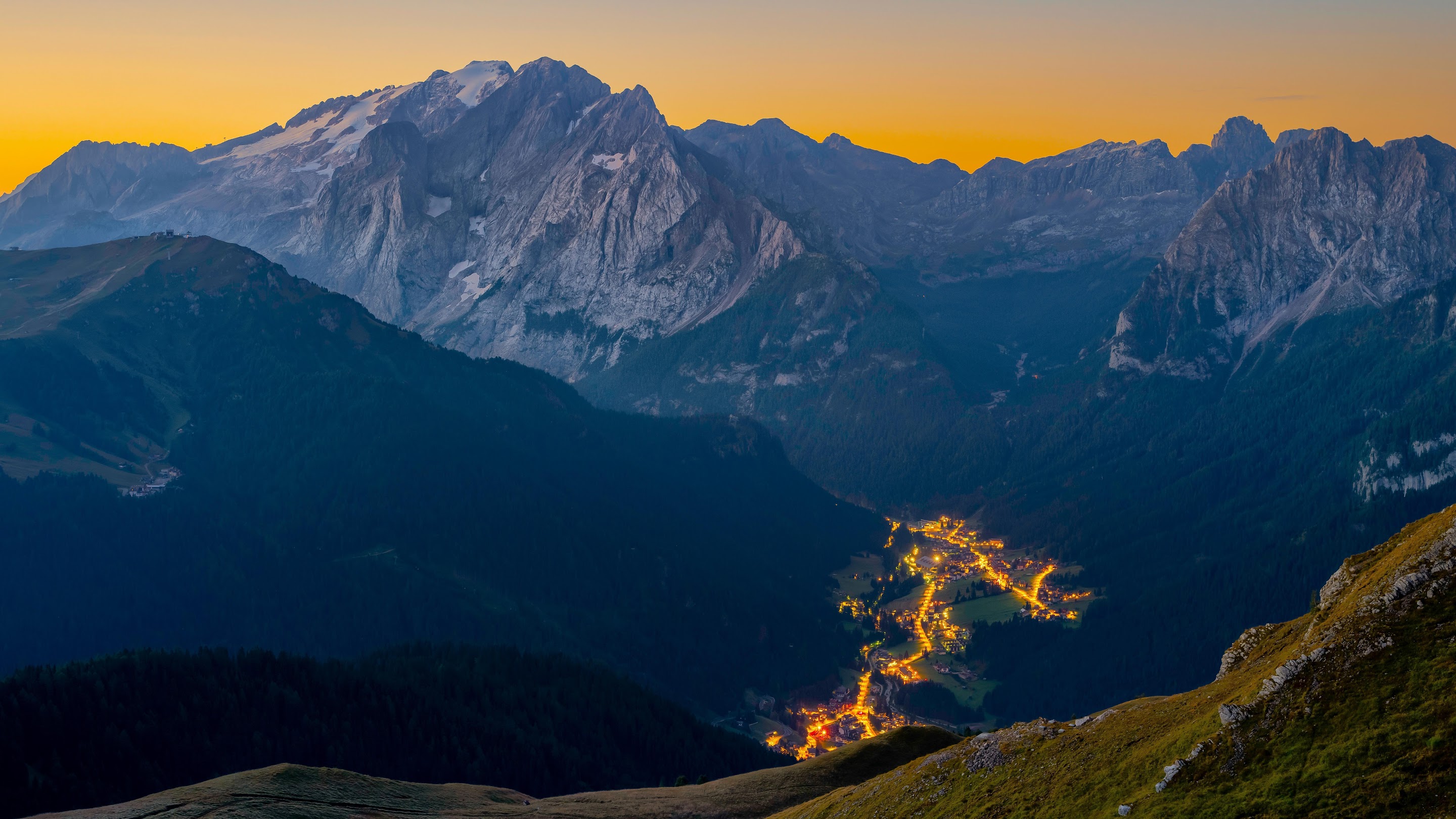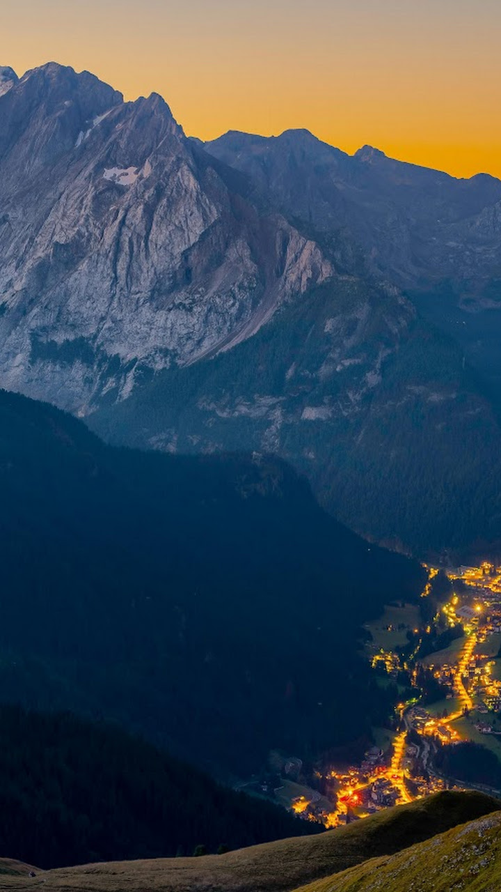 Mountainscape, Dolomites, Twilight, Alpine Village 8K Desktop Wallpaper