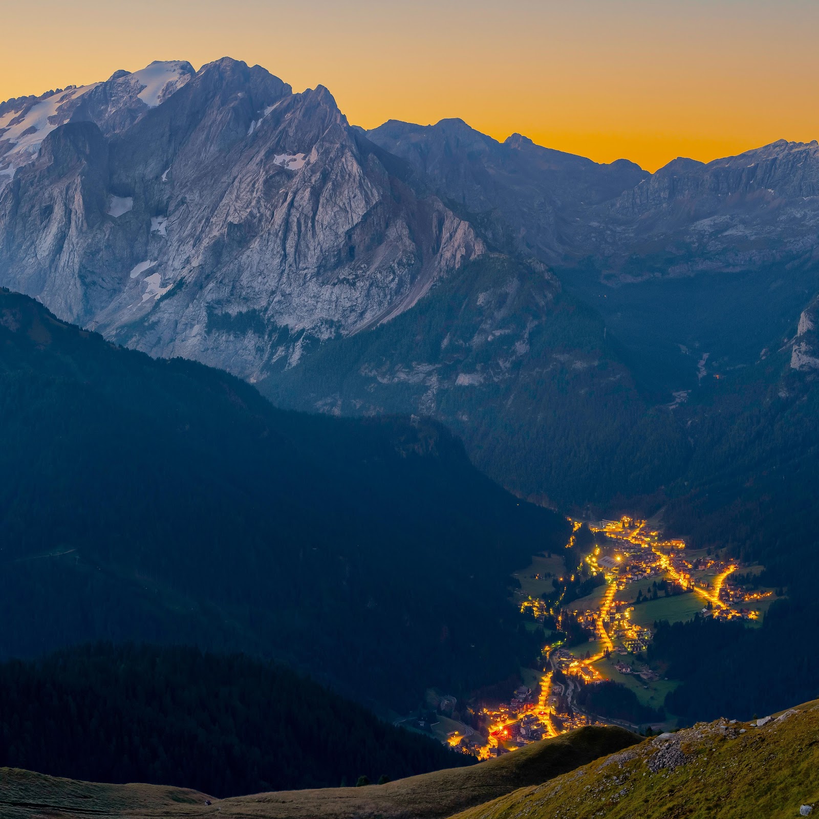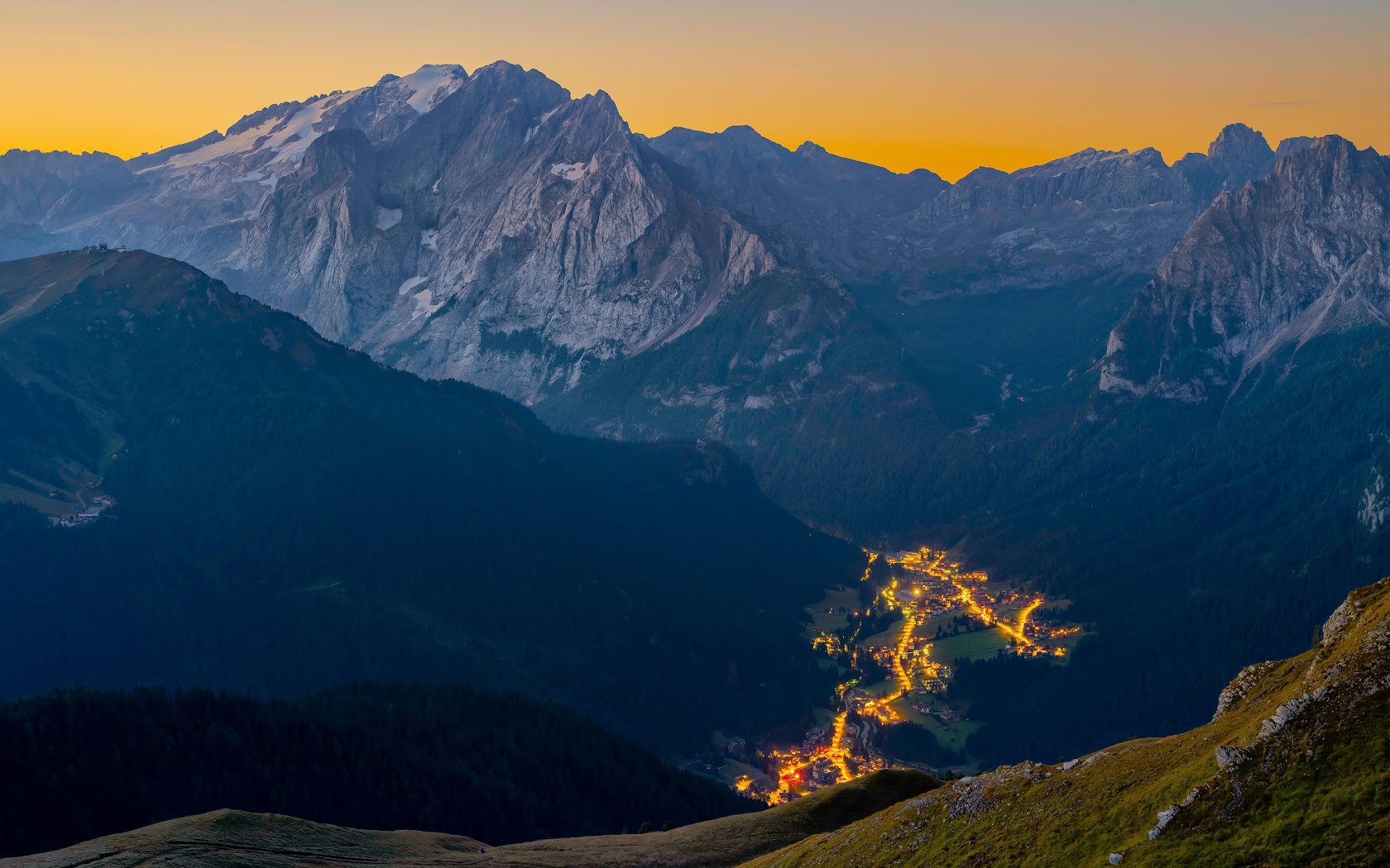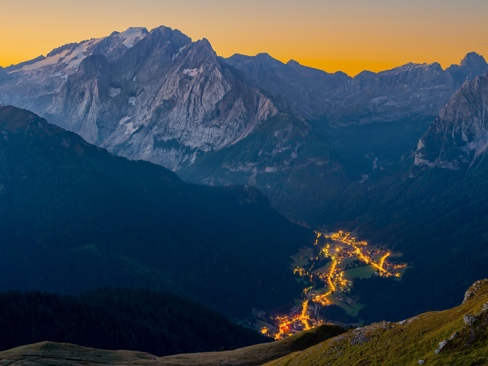 Mountainscape, Dolomites, Twilight, Alpine Village 8K Desktop Wallpaper