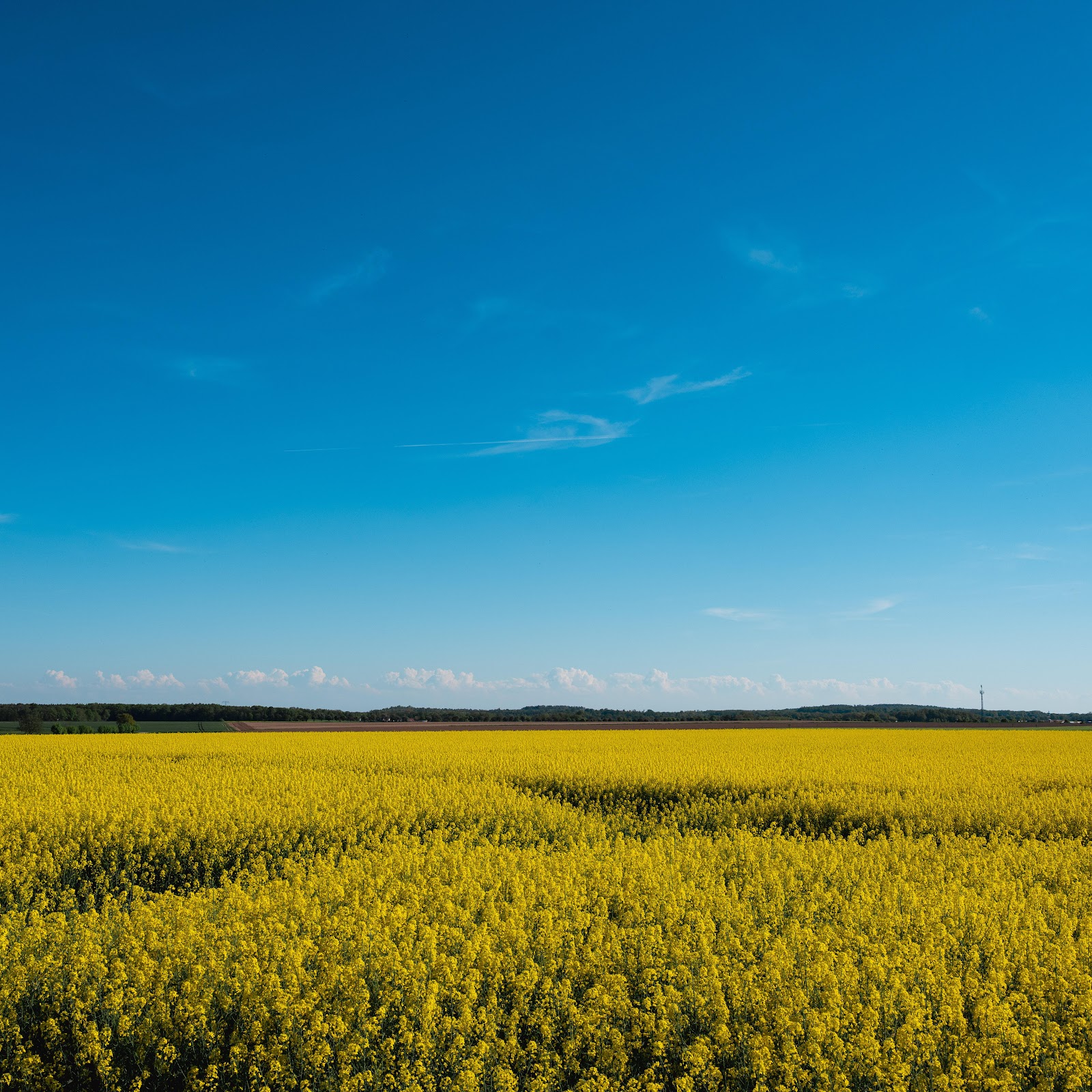 Rapeseed Field, Yellow Flowers, Clear Sky, Farmland 8K Desktop and Mobile Wallpaper Background with a maximum resolution of 8256x6192 px.
