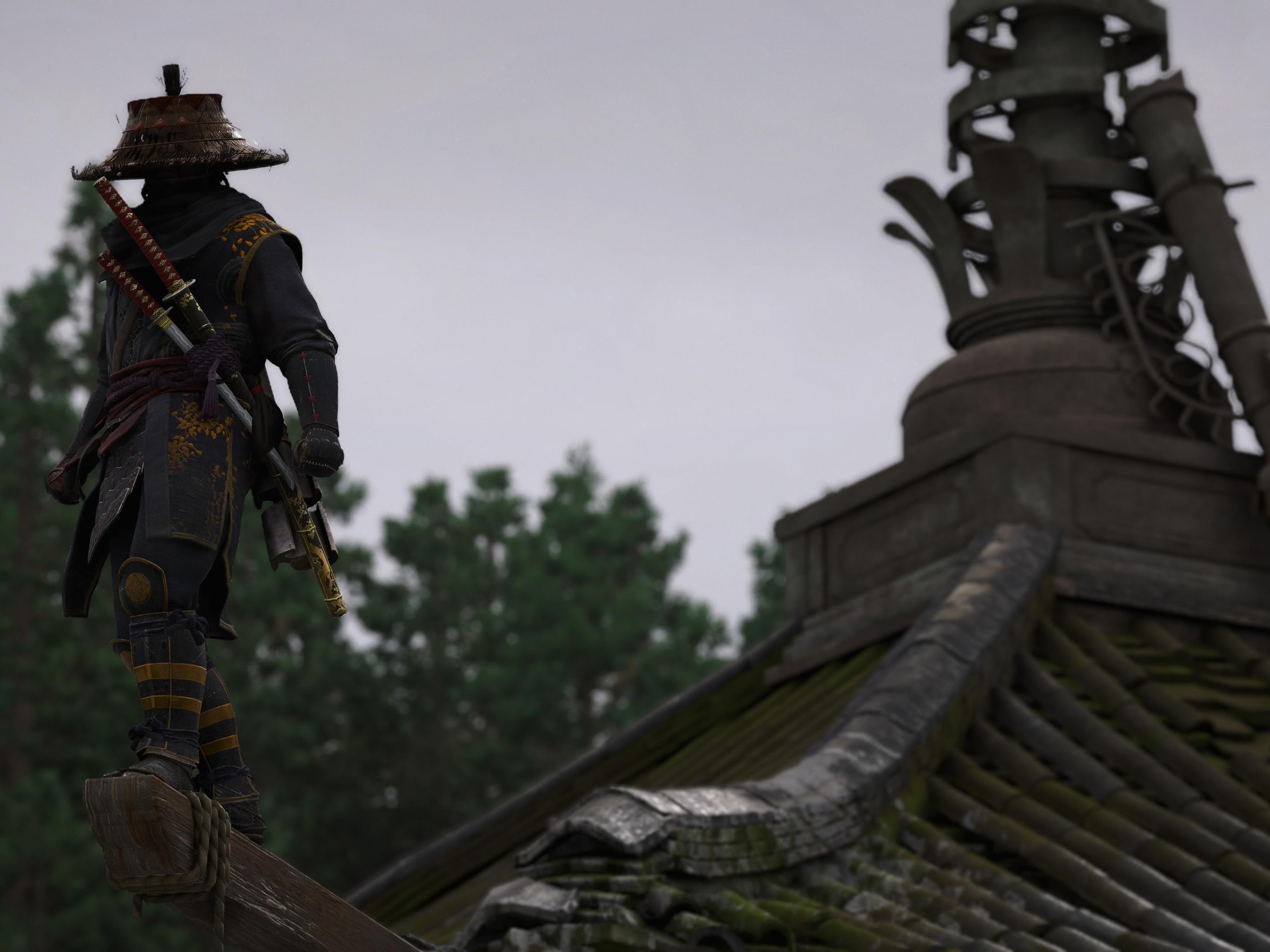 Samurai, Ronin, Japanese Architecture, Fantasy Art 4K Desktop and Mobile Wallpaper Background with a maximum resolution of 3840x2160 px.