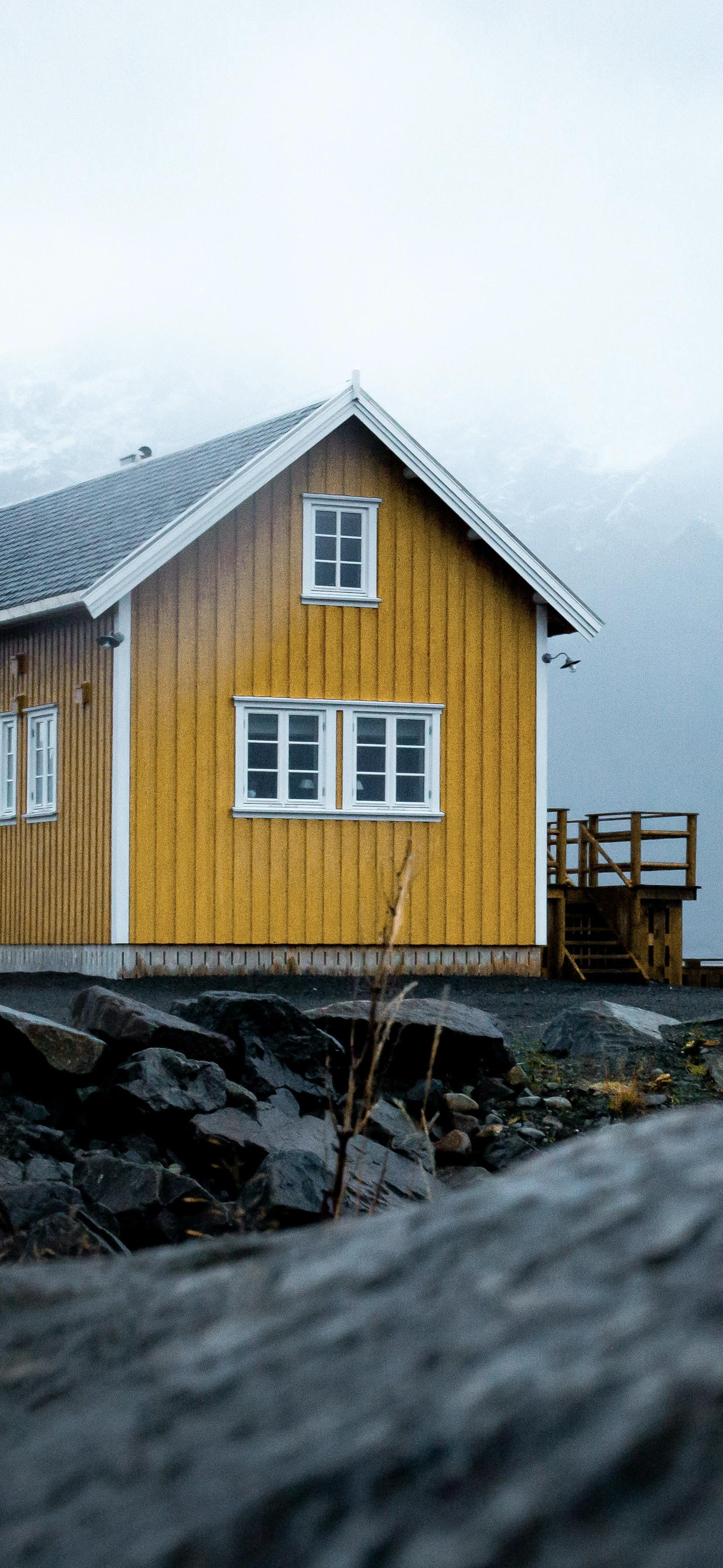 Scandinavian Architecture, Yellow House, Coastal Living, Lofoten Islands 2K iPhone Wallpaper Background (1656x3589)