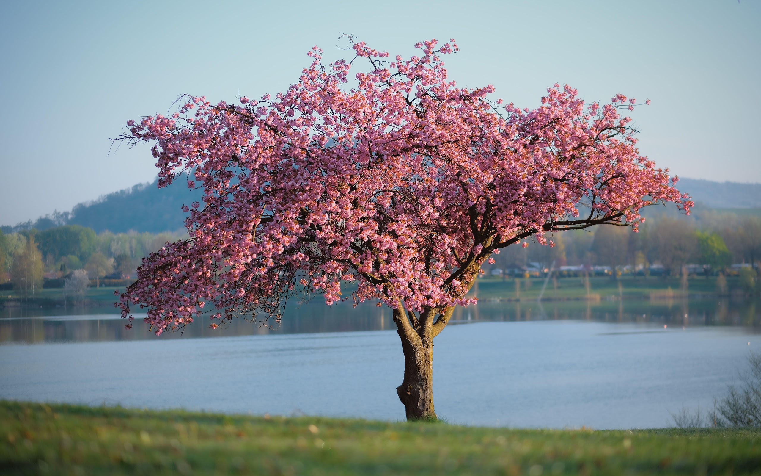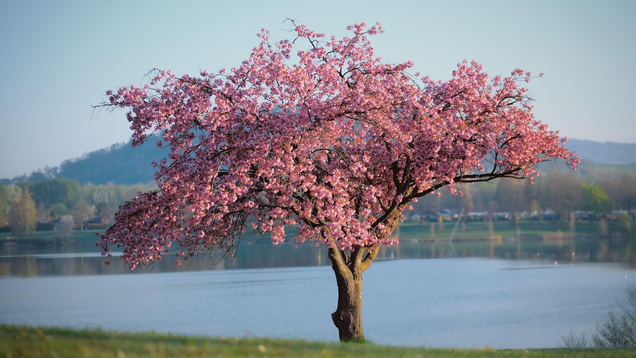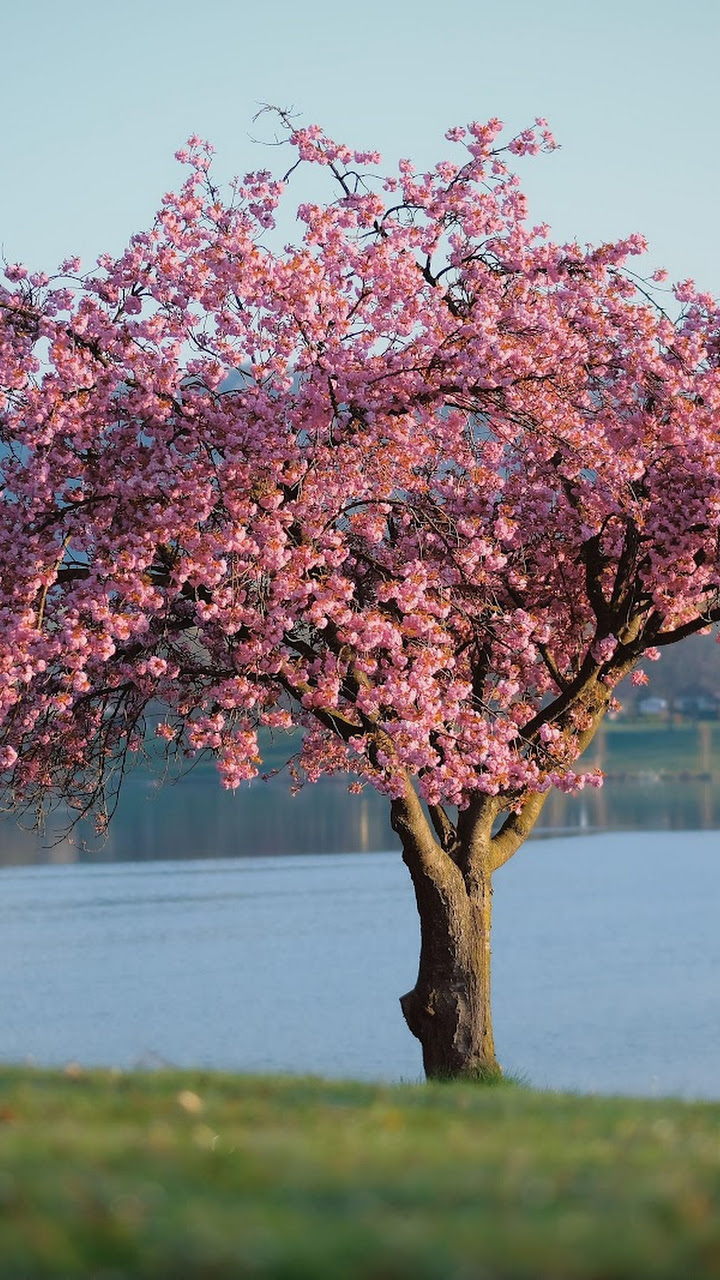 Cherry Blossom, Springtime, Lakeside, Nature Photography 5K Desktop Wallpaper