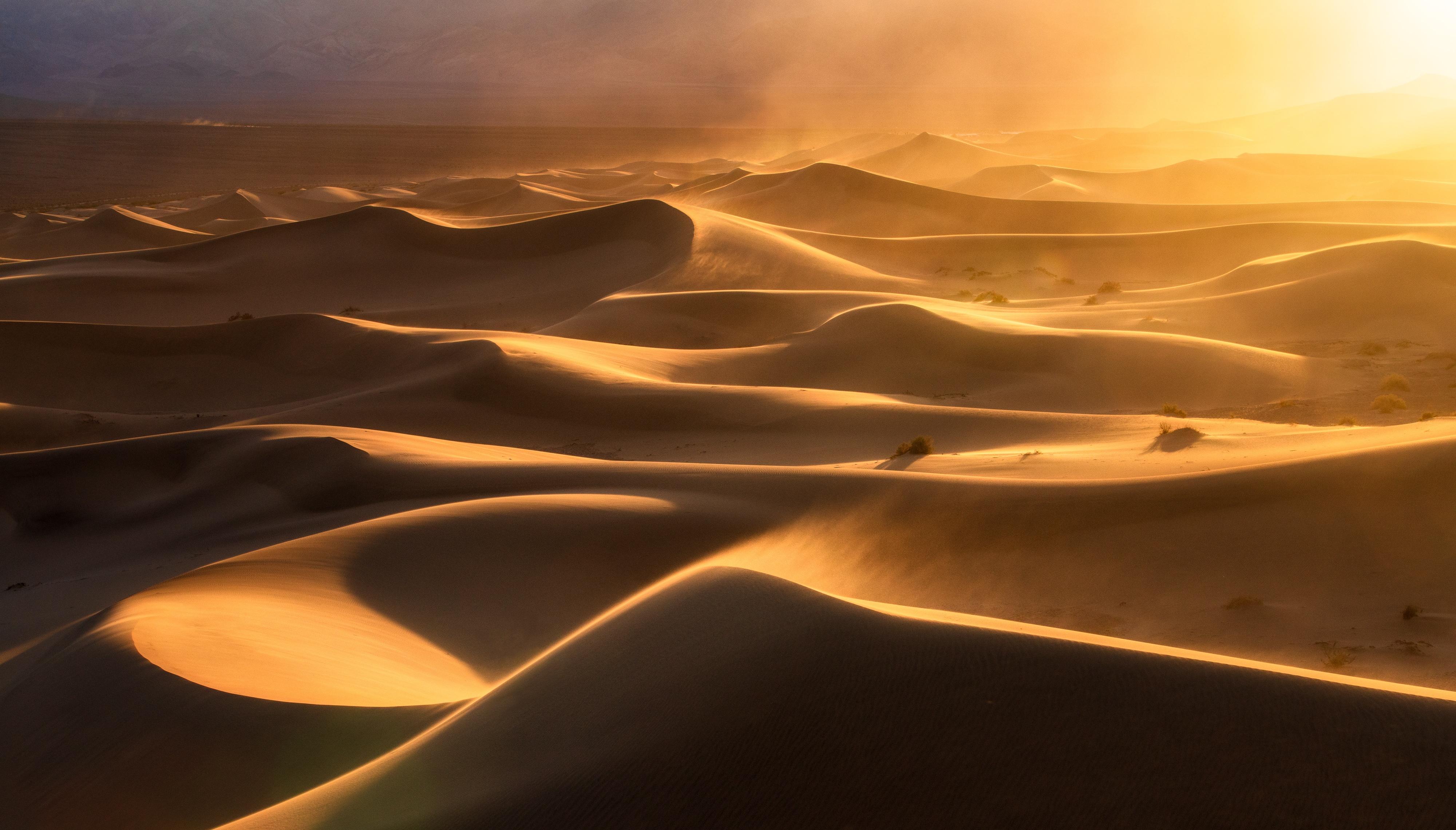 Desert Landscape, Sand Dunes, Golden Hour, Arid Environment 4K Desktop and Mobile Wallpaper Background with a maximum resolution of 4000x2281 px.