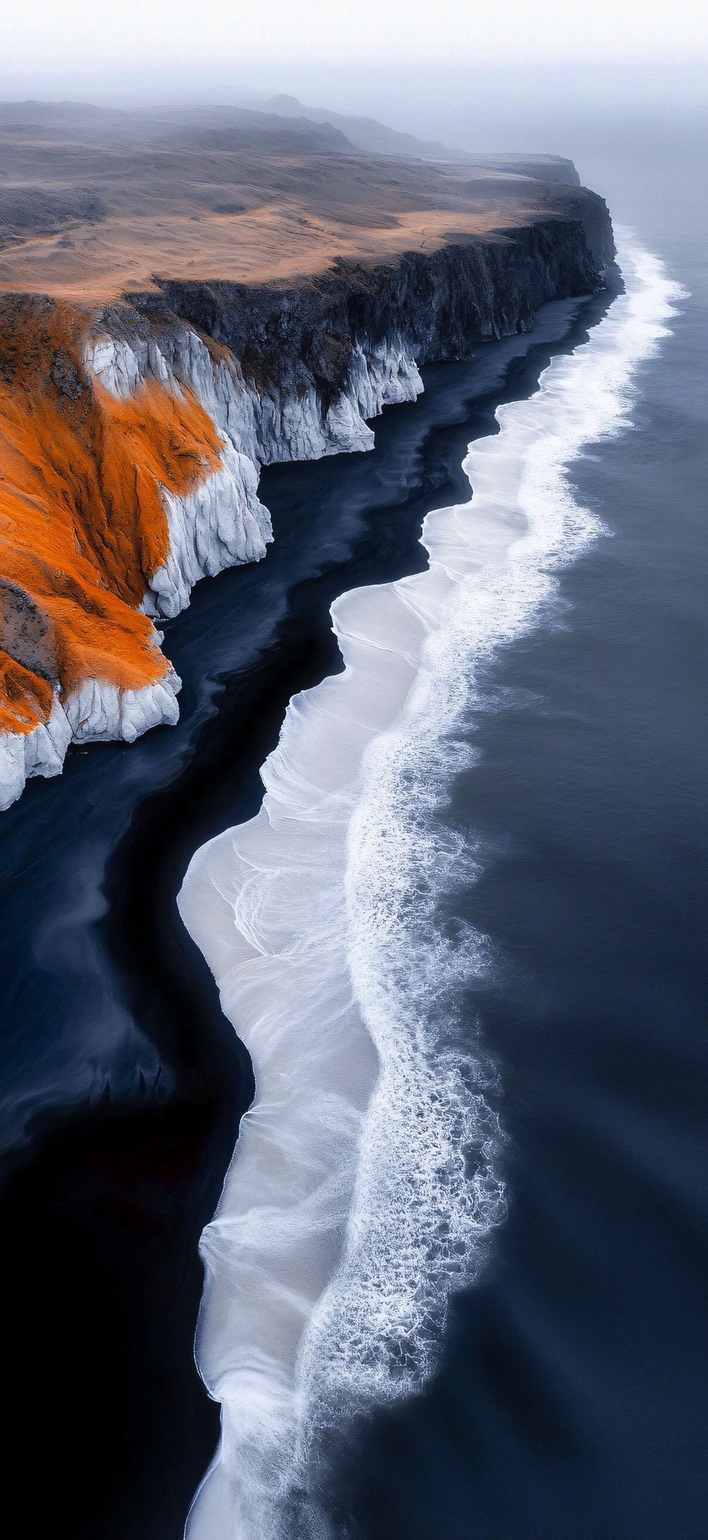 Iceland, Black Sand Beach, Coastline, Aerial View iPhone Wallpaper Background with a maximum resolution of 994x2160 px.