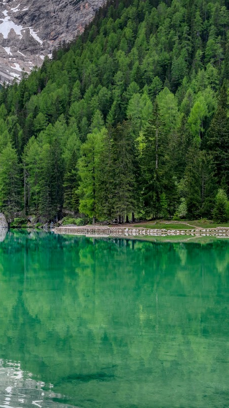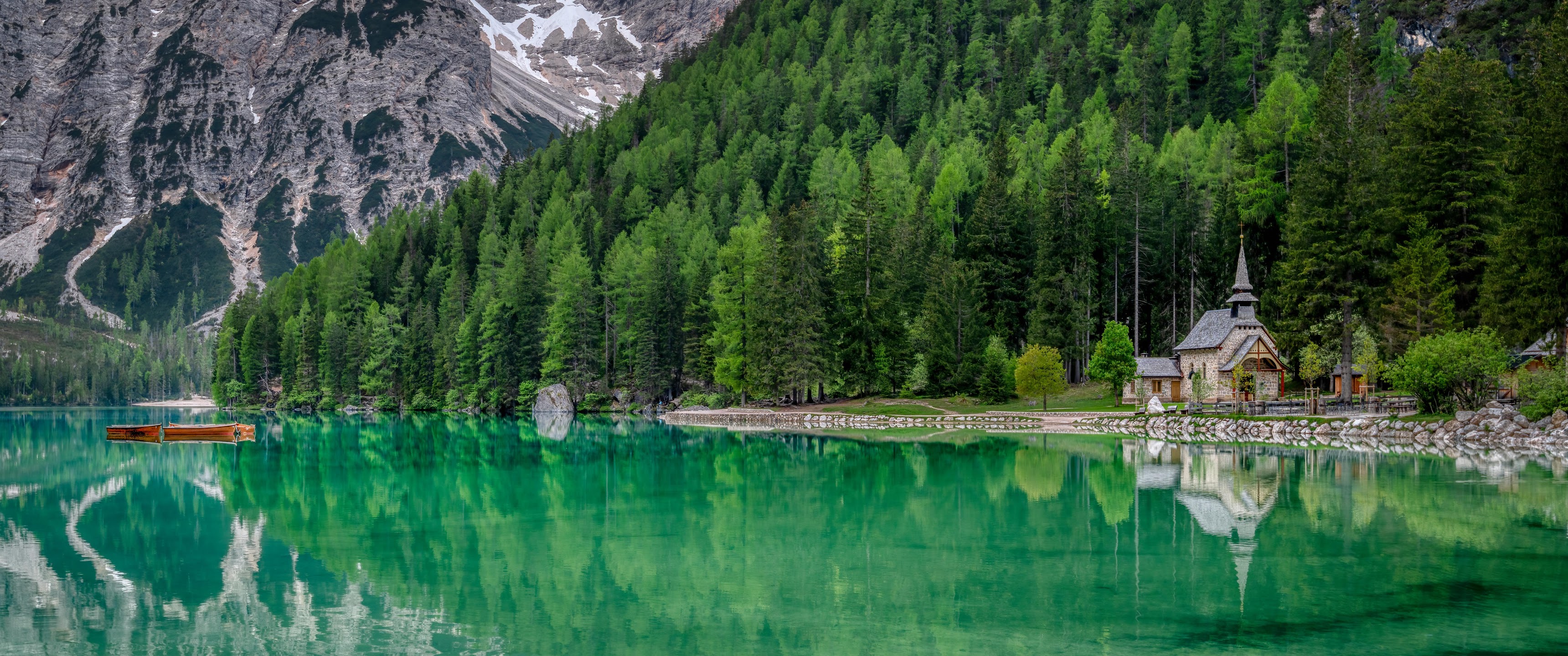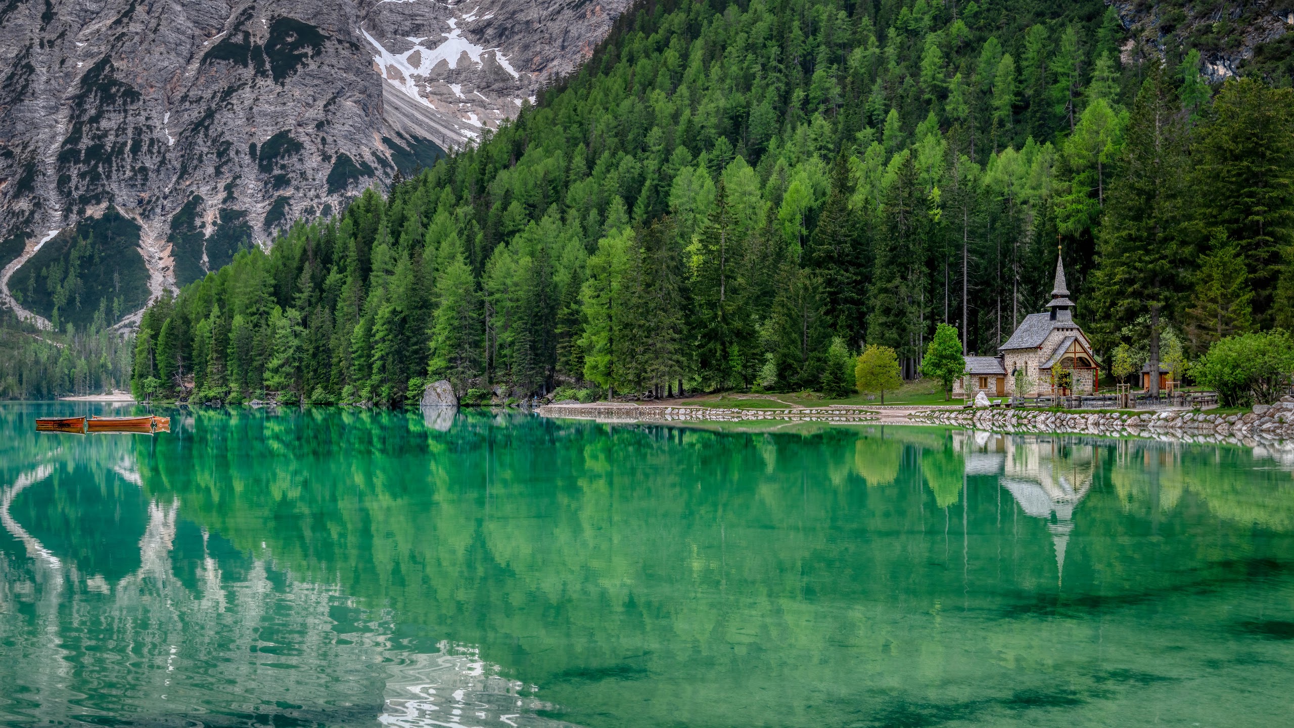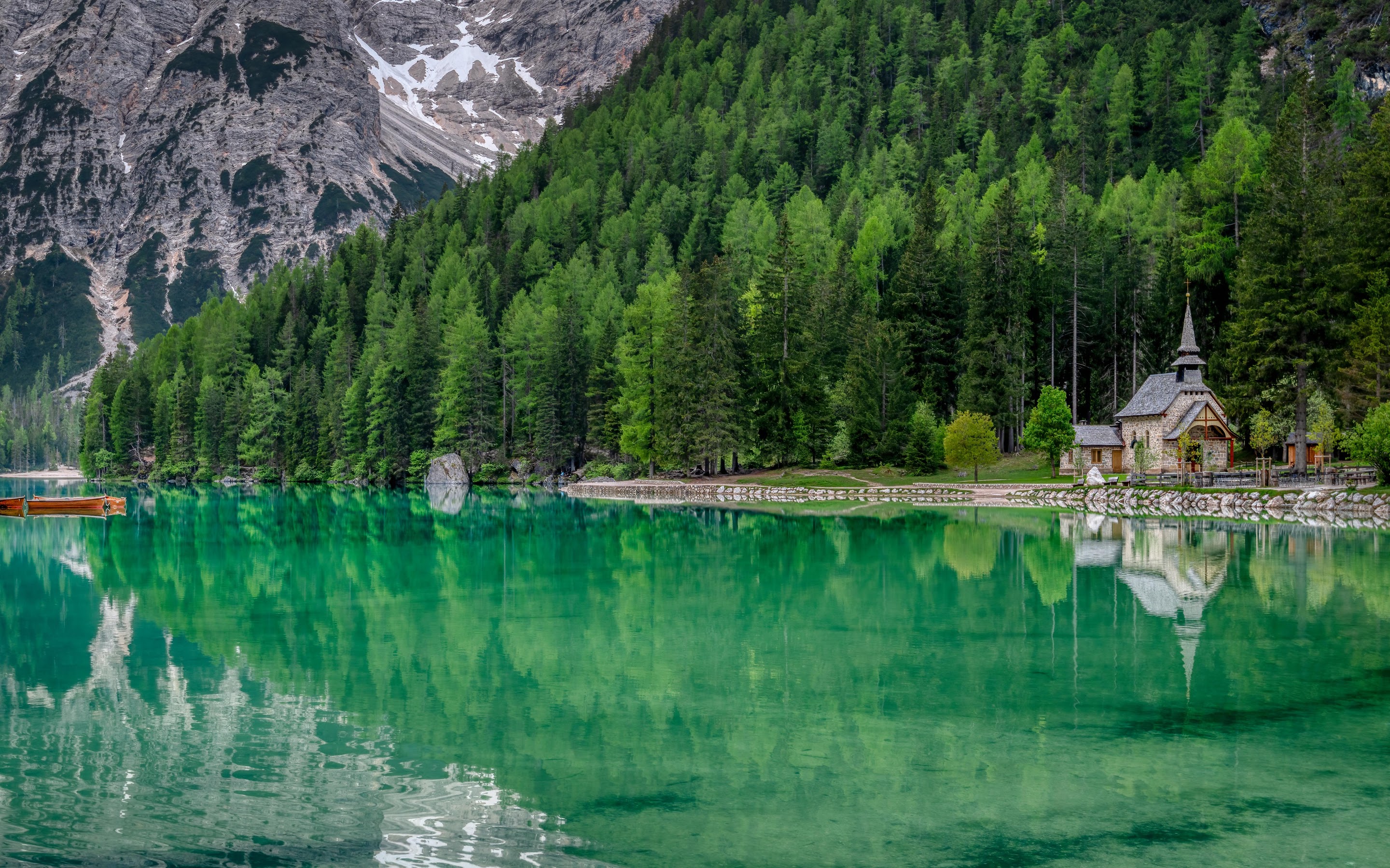 Lake Braies, Dolomites, Italy, Mountain Lake 5K Wallpaper Background (7364x3790)