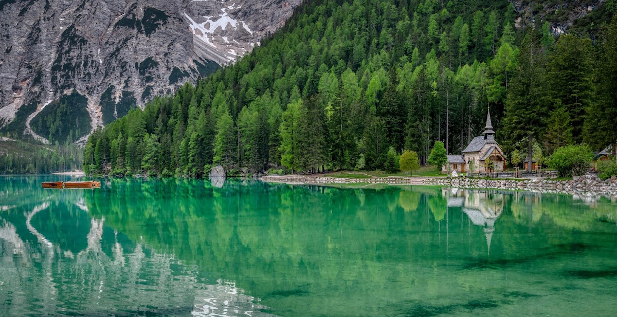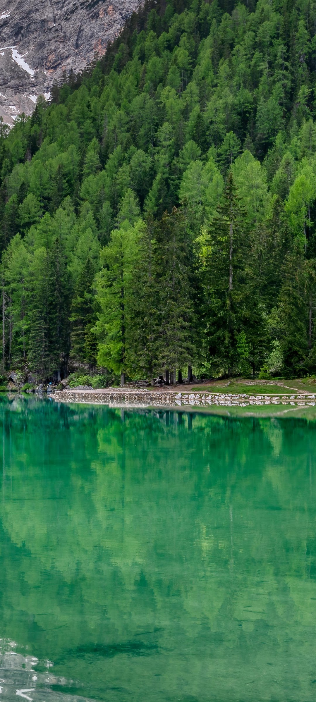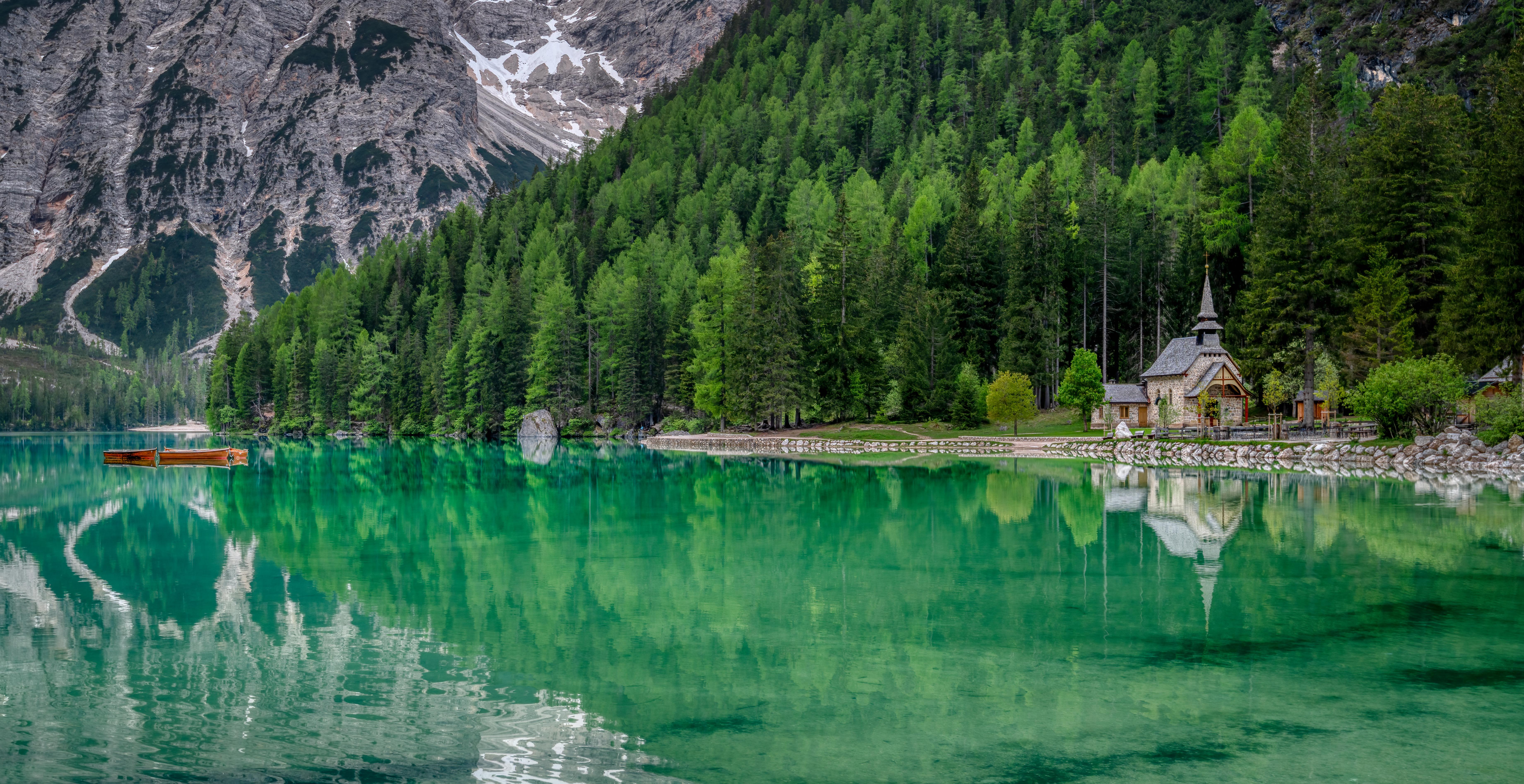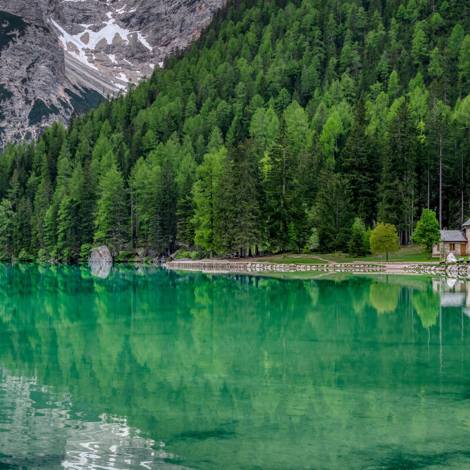 Lake Braies, Dolomites, Italy, Mountain Lake 5K Wallpaper Background (7364x3790)